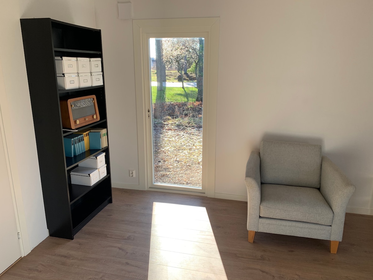 Փոքր բնակարան, հանգիստ վայր ՝ բնությանը մոտիկ ։ Լճի մոտ, լողավազան և բացօթյա տարածք ՝ խորովածի տնակներով և վազքի ուղիներով ։ 140 սմ մահճակալ և թախտ Խոհանոց, զուգարան և ցնցուղ Անկողնային սպիտակեղեն + սրբիչ, որը հասանելի է SEK 80/անձի համար հավելյալ արժեքով Սաունա՝ 80 շվեդական կրոնա մեկ սեանս Տեղեկությունների համար ՝ երկու փոքր էգ կատու տեղում Փոքր բնակարան ՝ բնությանը և լճին մոտ Շատ գեղեցիկ վազքի ուղիներ անտառի մոտակայքում 140 սմ մահճակալ և թախտ Խոհանոց, զուգարան և ցնցուղ Bedlinnen +80 SEK/pers Սաունա՝ +80 SEK