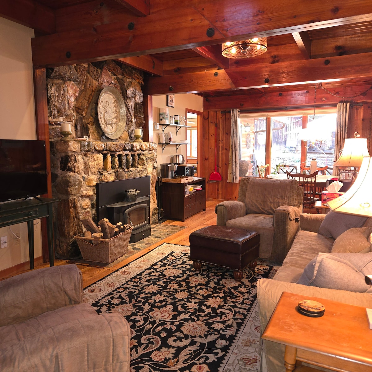 5 mi to hwy 80, 10 mi to Grass Valley. 96 to 535 mbps.EV-2 charger. $20 per dog per day. $20 for use of hot tub, per stay. Boat dock 1 mile.Your private side of cabin has private entrance into your own 3 rooms: LR/dining area, fireplace, 2 br and 1 1/2 bath. No kitchen but had small fridg microwave, coffee maker. bbq, outdoor stove. BR 1 Q bed, BR2 2 twin beds. LR has t.v. + Q Sofabed, armchairs and fireplace. Use of porch, back deck, fire pit.Very large parking area. Fully fenced.