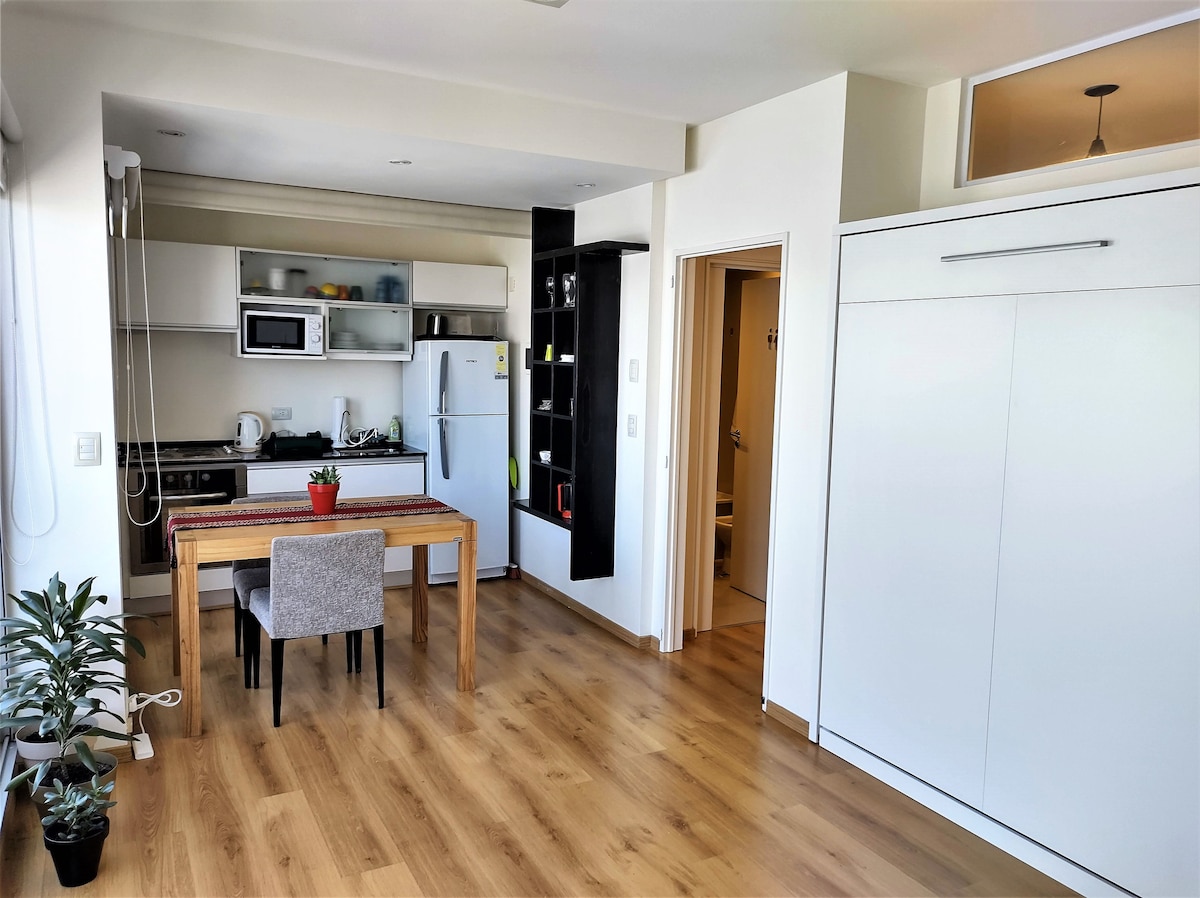 Գեղեցիկ բոլորովին նոր ստուդիա, լիովին կահավորված գերազանց որակի սարքավորումներով - TV 32'կաբելային/Netflix, WIFI 100 ՄԲ, A/C տաք - սառը, King Size մահճակալ, գրասեղան, լիարժեք խոհանոց, - հյուրանոց ոճի շենք 24 Hs անվտանգության, լողավազան, մարզասրահ, լվացքատուն: Գտնվում է Պալերմո Սոհոյի սրտում ՝ 200 մ հեռավորության վրա մետրոյից D/Plaza Italia - ից (Santa Fe Av.), մոտ է խանութներին, բարերին, ռեստորաններին, առևտրի կենտրոններին, զբոսայգիներին, թանգարաններին և ունի հեշտ մուտք դեպի կենտրոն և բազմաթիվ տուրիստական վայրեր: