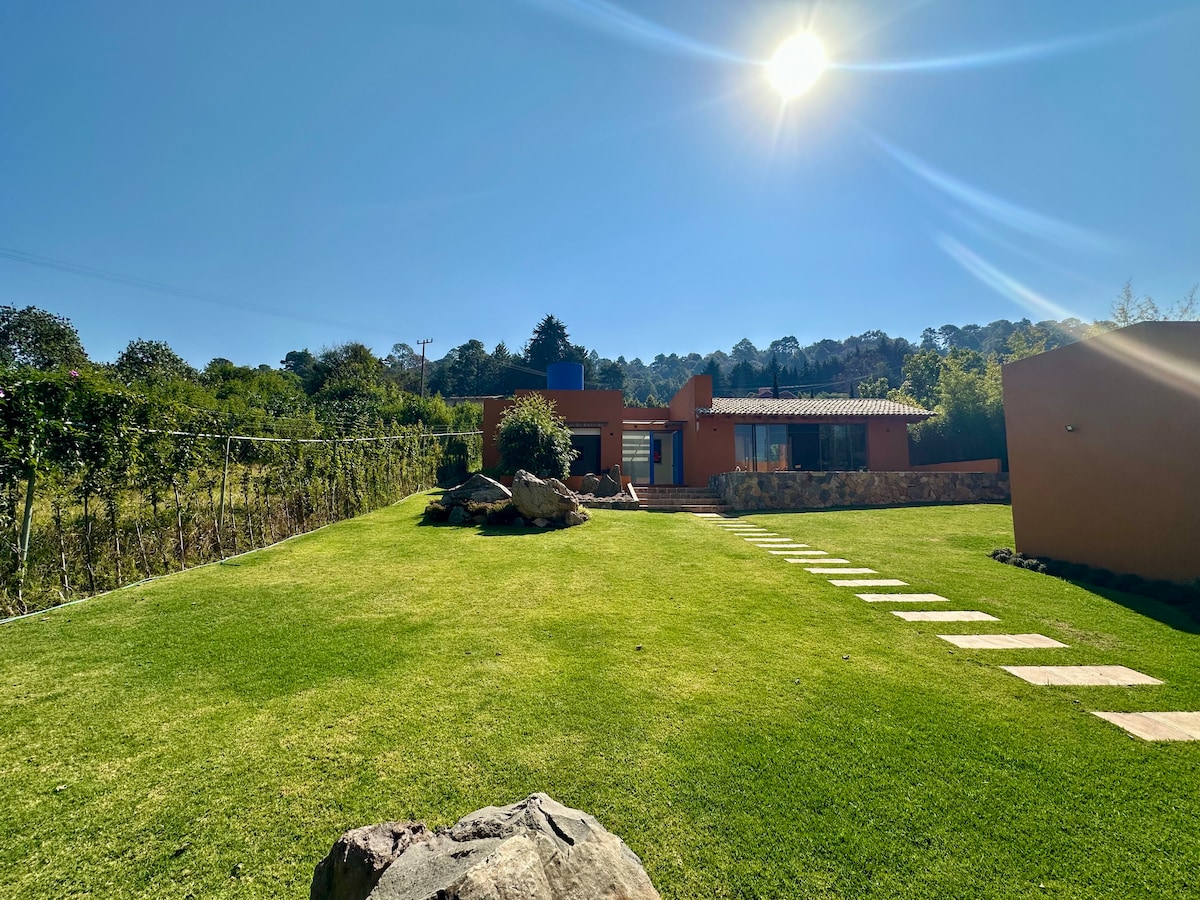 La Finca de Adobe es una casa amplia y tranquila, rodeada de naturaleza, ideal para convivir en familia o con amigos. Cuenta con jardín privado, jacuzzi y áreas al aire libre para relajarte, noches silenciosas y días mágicos. Ubicada en Sta. María Pipioltepec, a pocos minutos de Valle de Bravo, está rodeada de montañas para caminar, correr o practicar deporte al aire libre, y es una excelente opción si asistes a eventos en Rancho Juantepec, Jardín El Tlapehue, Boscoso, Avenue o Hacienda Pipiol.