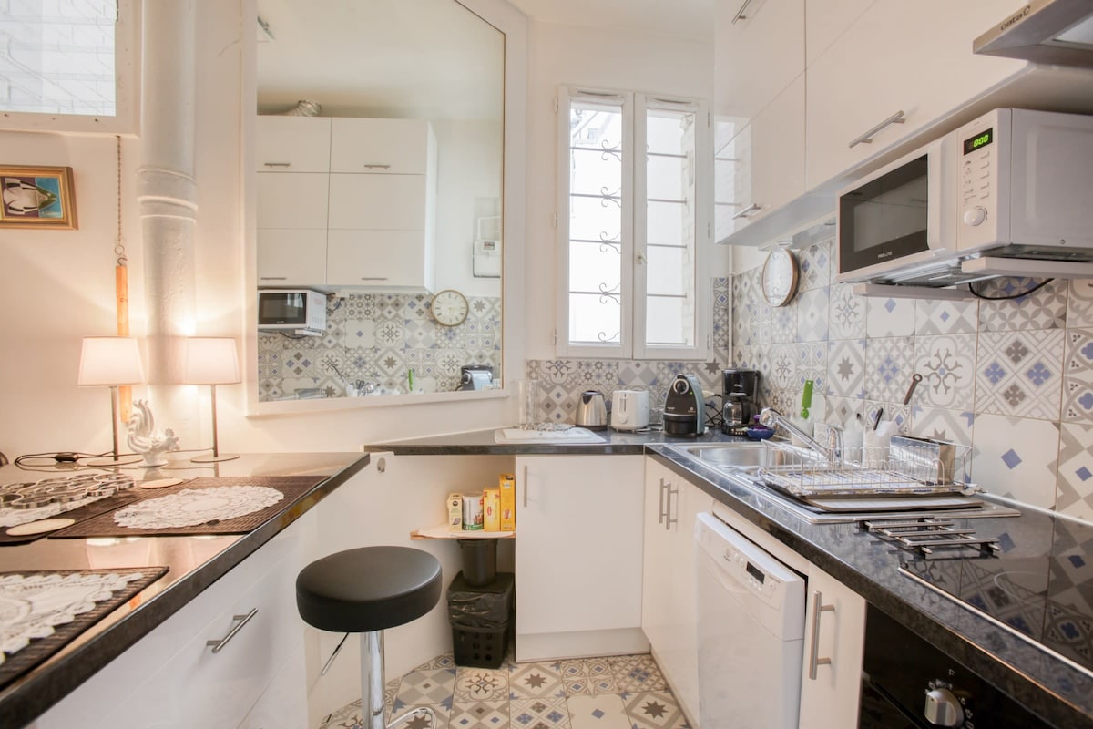 Լիովին վերանորոգված այս գեղեցիկ բնակարանը գտնվում է Հաղթանակի կամարից ընդամենը մի քանի քայլ հեռավորության վրա ։ Նրա հարմարավետ և ջերմ մթնոլորտը լիցքաթափվելու և հանգստանալու իսկական հրավեր է ։ Անկախ այն բանից ՝ գործնական ուղևորության, թե մեր գեղեցիկ մայրաքաղաք այցելելու համար մենք ձեզ հնարավորություն ենք տալիս ձեր այցի ընթացքում ապրել փարիզցու պես ։