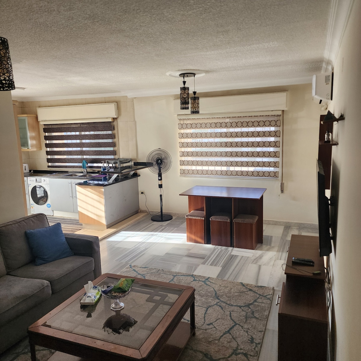 Գեղեցիկ ժամանակակից 2 սենյականոց բնակարան ՝ Ամմանի լավագույն վայրերից մեկում, մոտակա շուկաներում և ռեստորաններում ։
