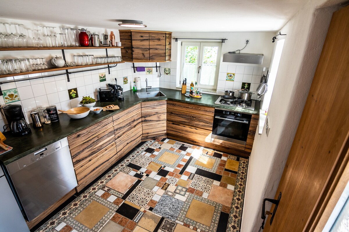 Die Hofstelle in ländlicher Alleinlage bietet eine ca. 60 qm große Einliegerwohnung mit allem Komfort für einen erholsamen Urlaub. Bei einem Frühstück auf dem Balkon können Sie Energie in der Morgensonne tanken. Genießen Sie dabei die frische Luft , den herrlichen Blick auf das Kloster Andechs und die unverbaute Umgebung. Die sonnige Terrasse am Bach und der Grillplatz laden nach einem ereignisreichen Tag zum rasten und relaxen ein.