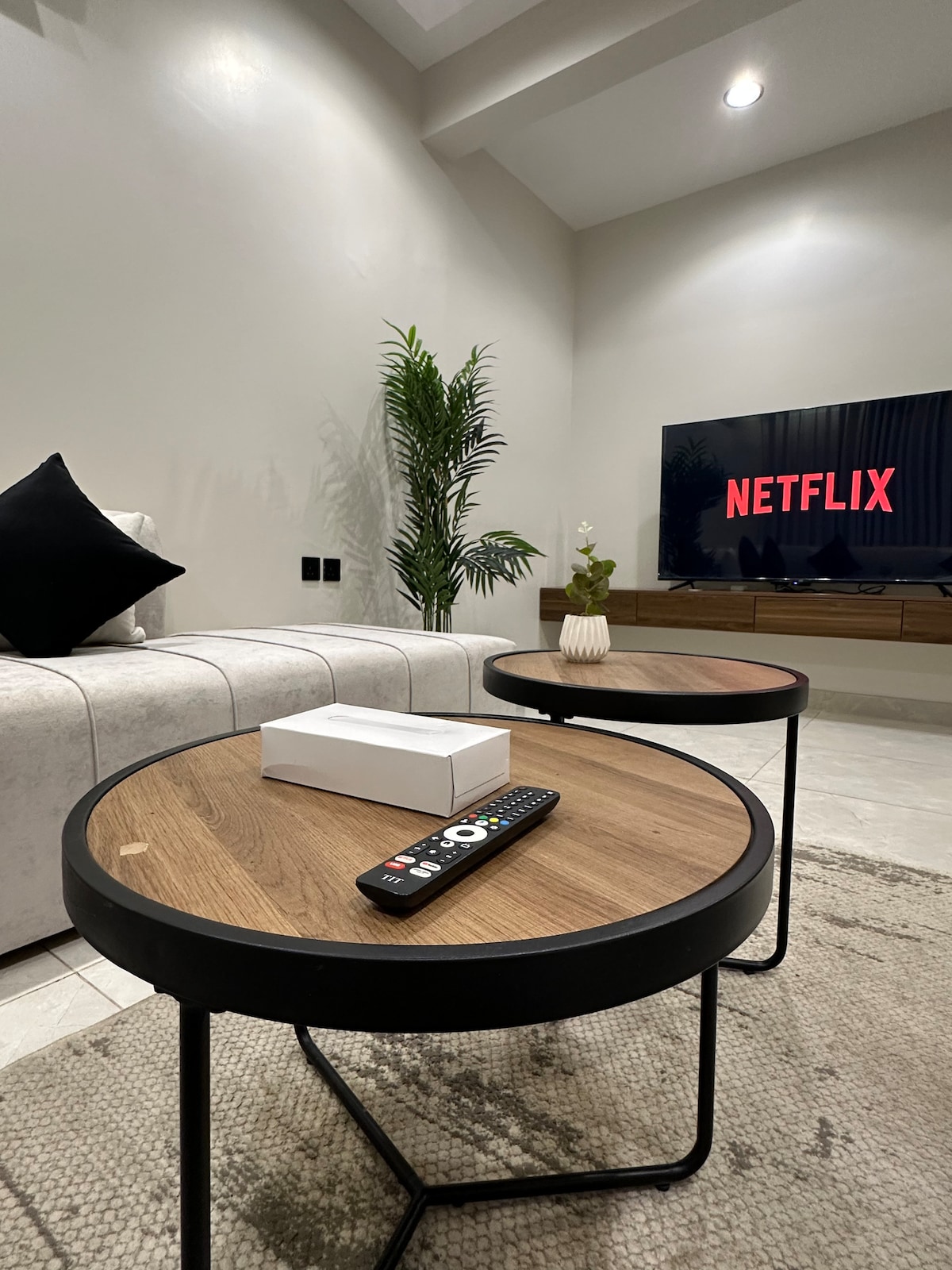 Welcome to your modern escape in Riyadh This cozy studio suits solo travelers couples and business guests Enjoy self check-in with smart lock fast Wi-Fi 70” Smart TV with Netflix and YouTube comfy queen bed with blackout curtains and a kitchenette for light meals Walking distance to Granada Mall and metro station Private entrance free parking Perfect for short stays remote work or weekend getaways Check-in anytime with full privacy and comfort