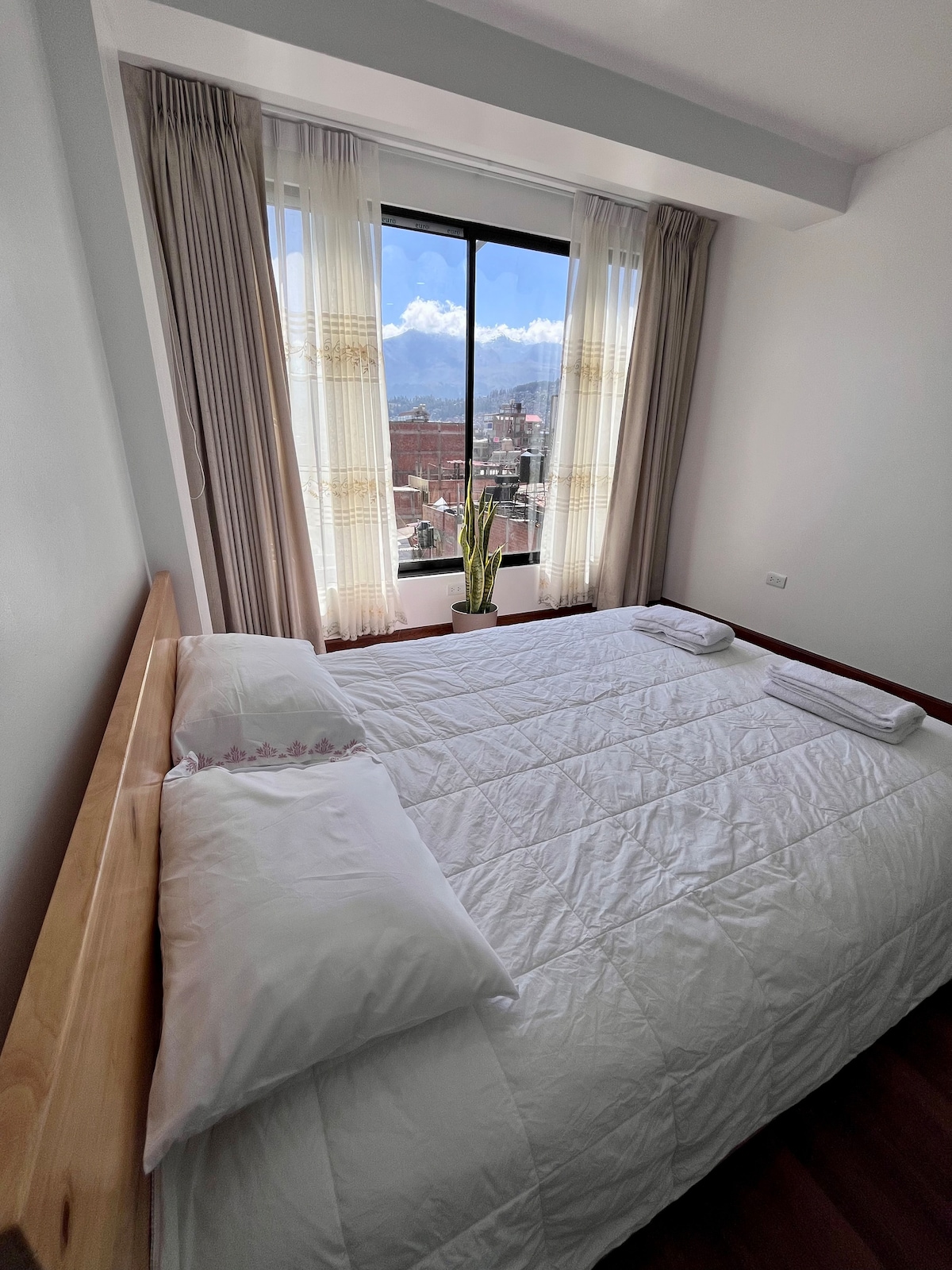 Զոնա Ուրբանա, 6 հարկ ՝ ձյունոտ տեսարանով տեռասներով, հրապարակից 5 րոպե հեռավորության վրա, Queen մահճակալ ՝ հագնված, զուգարան ՝ ջակուզիով սենյակում, գ/ սրբիչներ, վարսահարդարիչ, արդուկ հագուստի համար, պահարան, ճաշասենյակ ՝ հեռուստացույցով, կաբելային և WI - FI, բնական գազով հագեցած ամերիկյան խոհանոց, ջեռոցով, միկրոալիքային վառարանով, սառնարանով, բլենդերով, սրճեփով, թեյնիկով, բաժակներով, մենաջներով, 10 կգ լվացքի մեքենայով, սառը/տաք ջրով 24 ժամ, էլեկտրական ավտոտնակ կոնդոմինիումի ներսում, գրիլի տարածք, տնային կենդանիների համար հարմար, ավտոմատ ժամանում ։