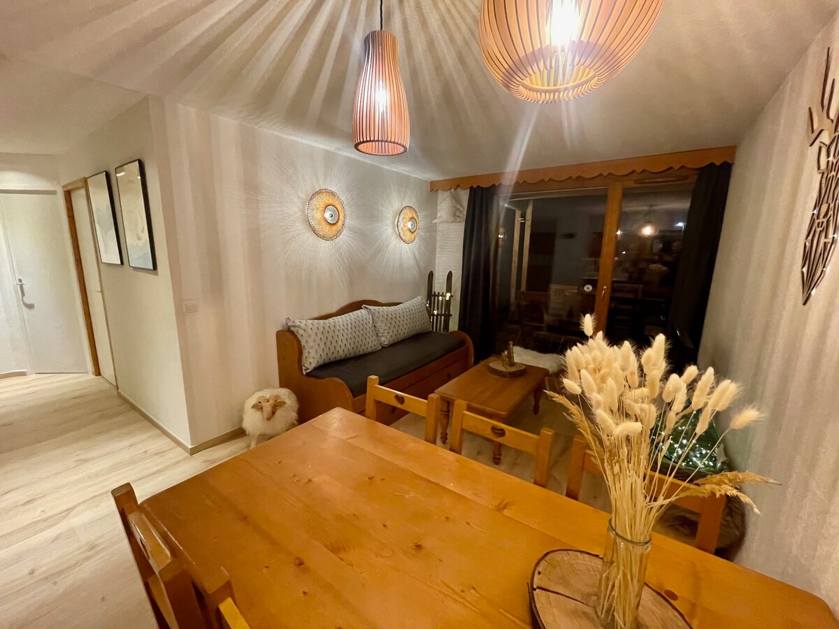 Այս ոչ սովորական բնակարանը, որը գտնվում է վերևի հարկում ՝ առանց վերելակի, կվայելի գեղեցիկ պայծառություն և անխոչընդոտ տեսարան դեպի Ռուանի հովիտը կամ Անսելլե զանգը: Այն ունի բաց հատակագծով հյուրասենյակ ՝ մեզանինի, խոհանոցի, անկախ զուգարանի, ցնցուղի սենյակի և ձեղնահարկի 2 ննջասենյակի վրա ։ Դուք կգնահատեք դրա հատակի տարածքը, որը թույլ է տալիս պահել և մի քանի մահճակալ: 8 մահճակալ ՝ ձմռանը միջքաղաքային կամ ալպիական լեռնադահուկային լանջերից 200 մետր հեռավորության վրա ՝ փոքր լեռնադահուկային պահարանով ։