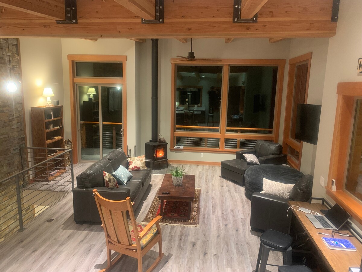 Այս բոլորովին նոր ձևափոխված շալե ոճի տունը հպարտանում է սպիտակ նավի գրկում առաստաղներով, մայրու պատերով և բաց ճառագայթներով: Պատուհանների մեծ պատուհանները բացահայտում են Չուգաչի լեռների տեսականին: Այն բաց հատակի հասկացություններն ունեն լեռնային տնակի զգացողություն ՝ քաղաքային տան ժամանակակից վերազինմամբ ։ Ննջասենյակի լոֆթն առանձնանում է գեղեցիկ ճարտարապետական դիզայնով և հարմարավետությամբ: Այս վայրը հրաշալի վայր է զույգերի կամ մինչև 6 տարեկան ընտանիքի համար ։ Հարևան Kincaid պետական զբոսայգին ՝ իր օվկիանոսի տեսարաններով և մեծ արահետներով, առաջարկում է մի շարք գործունեություն