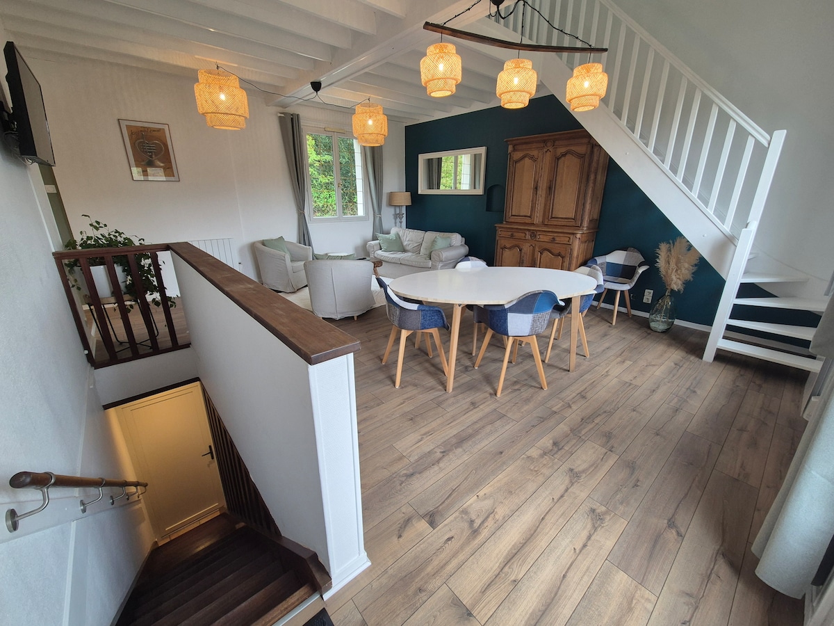 Սենսորային զարթոնք Մոն - Սեն - Միշելի դիմաց ։ Գնահատված 3 աստղ և սերտիֆիկացված Qualidog ՝ այս առանց աստիճանների կոկոնը, որը գտնվում է ծովի և գյուղական վայրերի միջև, առաջարկում է ծովածոցի անխոչընդոտ 180° տեսարաններ: Ներսում ՝ 2 հարմարավետ ննջասենյակ, կահավորված խոհանոց, հյուրասենյակ ՝ փայտի վառարանով և թախտով ։ Վերանդան լույսով ողողում է տարածքը, Բոնզինիի փարոսբոլի սեղանը և անտառապատ այգին ձեզ հրավիրում են հանգստանալու: Հազվագյուտ ապաստան ՝ նրբագեղության, խաղաղության և անմոռանալի պահերի միջև, որը հասանելի է ձեր մորթե ուղեկիցին ։