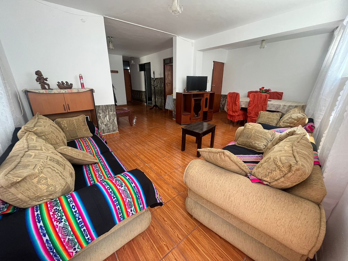 Este elegante alojamiento es ideal para viajes en grupo.El departamento se encuentra a dos cuadras del Estadio Nación Chanka y a 7min de la Plaza de Armas de Andahuaylas.Ademas, nos encontramos en una zona con muchos restaurantes y buena comida. El departamento cuenta con tres dormitorios, 2 baños completos,sala,comedor,cocina y estacionamiento gratuito dentro de las instalaciones, además tenemos agua caliente con panel solar y terma.Wtsp:981918261.