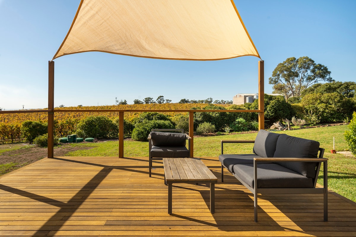 Vineyard Views, hidden in the ridges of Menglers Hill near Angaston, on a working-vineyard, delivers everything you need for your next weekend getaway in the Barossa. With Angaston a five-minute drive in one direction and world class wineries a five-minute drive in another, Vineyard Views has you covered. You can stay in and watch the sunset from the deck with a glass of shiraz, or you can use the peaceful location as a base to visit nearby cellar doors and other Barossa attractions.