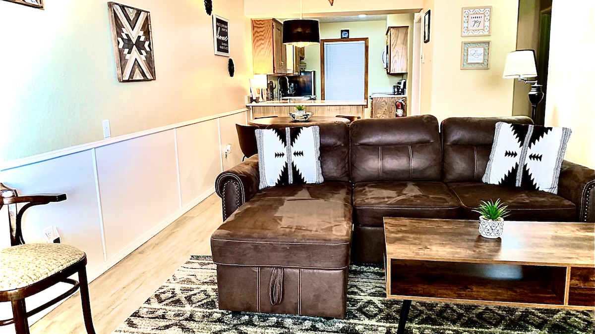 Բոլորովին նոր 2BR/2B կոնդոմինիում ՝ ընդարձակ բաց հայեցակարգով: Առաջին հարկ: Գտնվում է Angel Fire Resort - ի լանջերից մի քանի րոպե հեռավորության վրա: Բուխարին ամբողջացնում է ընդարձակ բնակելի տարածքը ։ Վայելեք ձեր առավոտյան սուրճը պատիոյում ՝ լանջերի տեսարանով: Մեր մայրամուտի պատիոն տեղադրված է ջակուզիով և կրակարանով, ինչպես նաև ունի գեղեցիկ տեսարան դեպի լեռները : Ամբողջական խոհանոց, լվացքի մեքենա և չորանոց, անվճար WiFi: Քնում է 6 ժամ:
