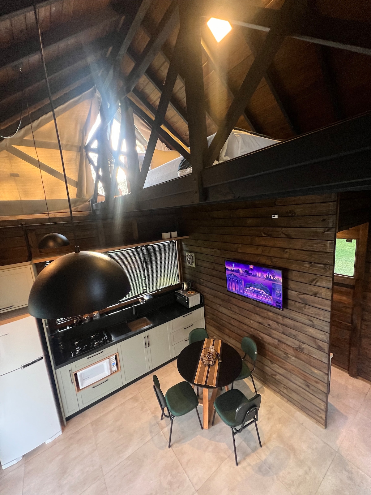 Տնակ Քեմփինգի ներսում ։ Բնության գրկում ՝ նայելով արաուկարիայի պսակին և լռության աղմուկին ։ Մեծ, կահավորված և զարդարված տարածք նրանց համար, ովքեր ձգտում են արկածներ ապրել հարմարավետությամբ և հանգստությամբ ։ Մենք տրամադրում ենք հանգստի և բնության հետ կապի յուրահատուկ փորձառություն ։ Մեր հյուրերը կարող են զգալ Քեմփինգի յուրահատուկ էներգիան ՝ ջրվեժից, բնակելի տարածքներից, կենդանի երաժշտությամբ կրակակետից և մեր աստղից ՝ ԿԱԽԱՐԴԱԿԱՆ ԱՎՏՈԲՈՒՍՈՎ: Կաբանաներ ՝ տաղավարների համար նախատեսված լայն տախտակամածով ։