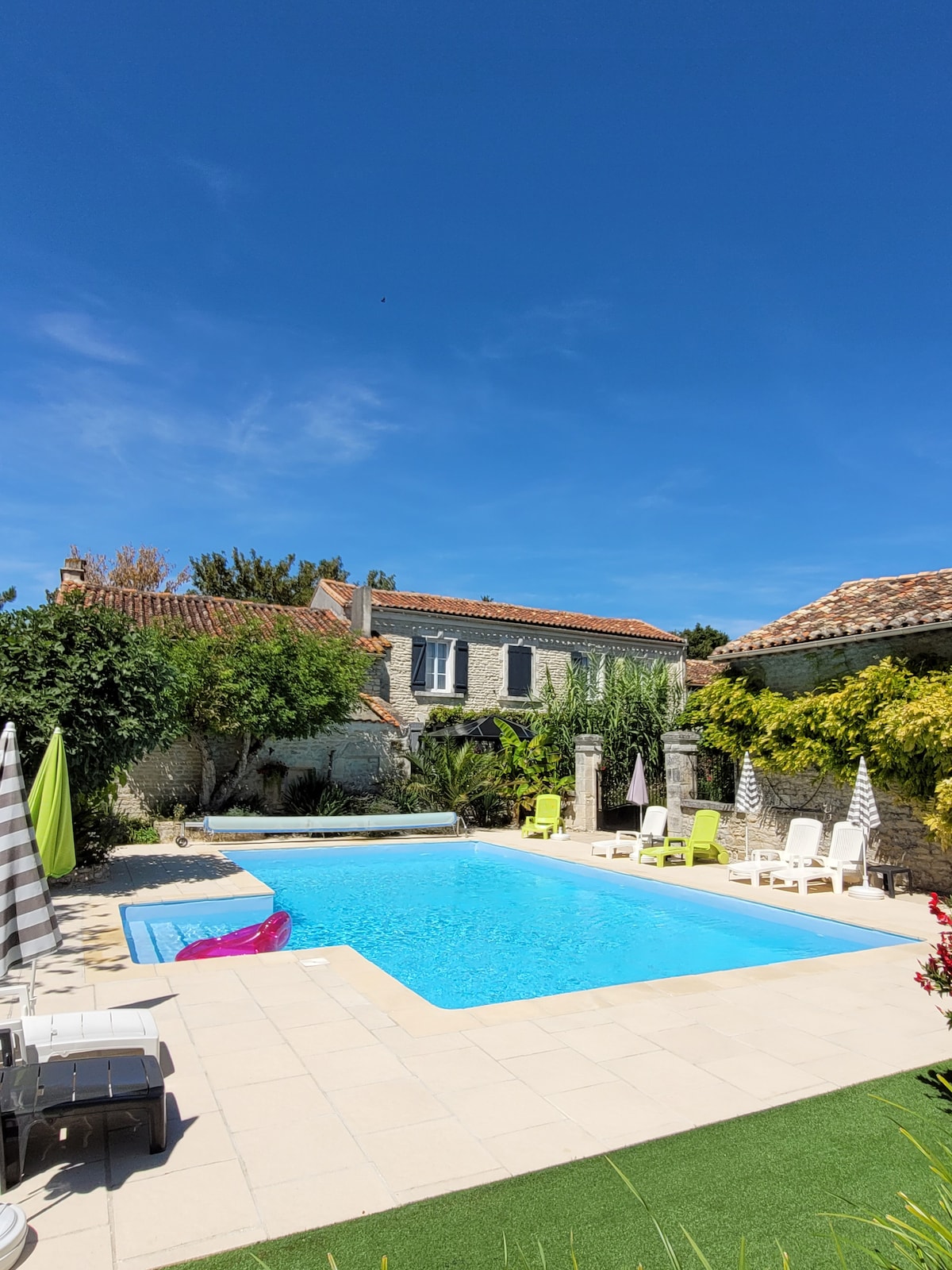 Nichée en pleine campagne charentaise, La Maison Giacomelli se vit au rythme de la nature. Parc arboré, jardin clos et grande piscine chauffée (10×5 m), exposée sud-ouest. Le spot parfait pour paresser sous les arbres, admirer les ciels étoilés, savourer en pleine conscience un verre de rosé avec des glaçons, face au coucher du soleil . Abandonnez-vous à la douceur de la Charente en flânant à Nanteuil-en-Vallée ou Verteuil-sur-Charente. Angoulême est à proximité.