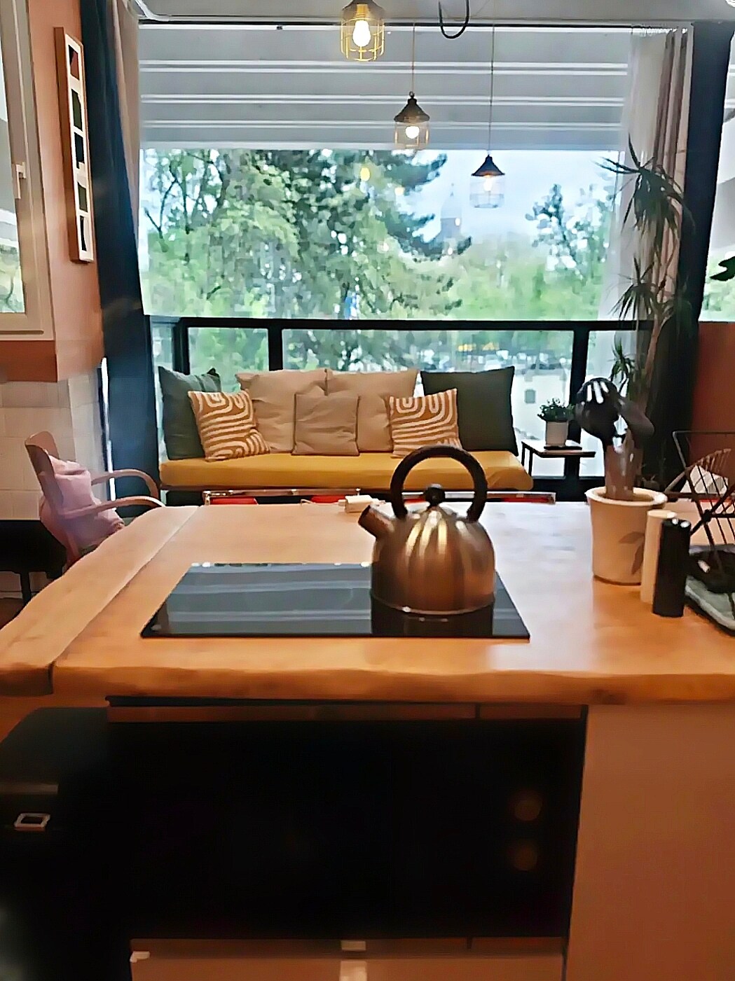 Բացօթյա ջակուզիով տանիք ՝ հարավում գտնվող տեռասում