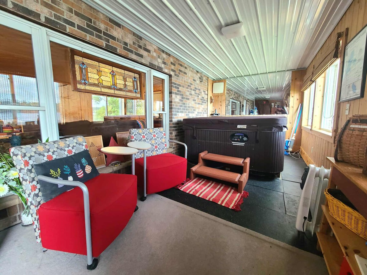 Relax and let life slow down a bit at the Crafted Cottage w/NEW HOT TUB overlooking the lake! Renovated home on peaceful 777 acre Maple Lake. Enjoy views of the water from the family room through floor-to-ceiling windows. Play games, cook your favorite meals in the full kitchen or take in a movie on the smart tv. Big living room to hang out in! Year round fun at this cozy cabin. Visit the local brewery or wine bar + the best coffee in town is right up the road!