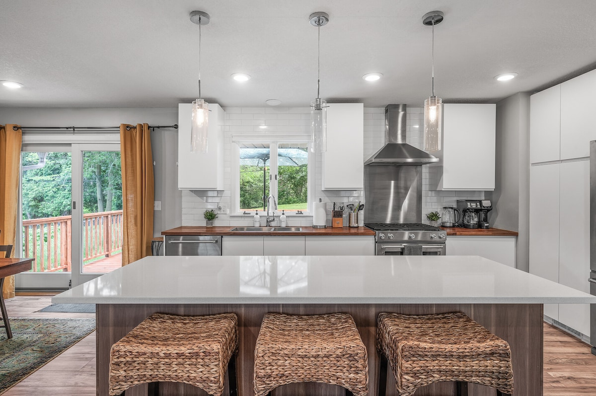 Great views, NEW KITCHEN, numerous amenities and lots of space for large groups. Come retreat to the Mississippi River. Located 15 minutes north of downtown Minneapolis and 20 minutes from St. Paul, experience the conveniences of the city while being surrounded by outdoor beauty. The hot tub is available year-round as well as the massage chair. This large home is ideal for family/friend gatherings and work retreats. Plenty of room to spread out with a stocked coffee bar and many other amenities.