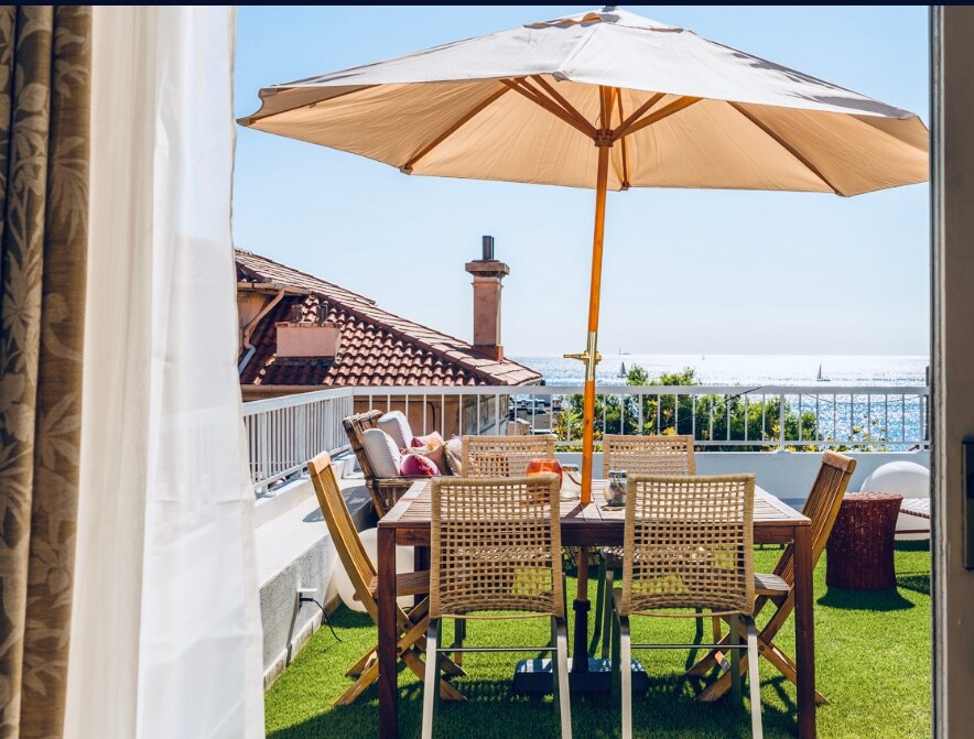 Ծովային տեսարանով տեռաս՝ ջրից 70 մ հեռավորության վրա, հանգիստ և կանաչապատ տարածք