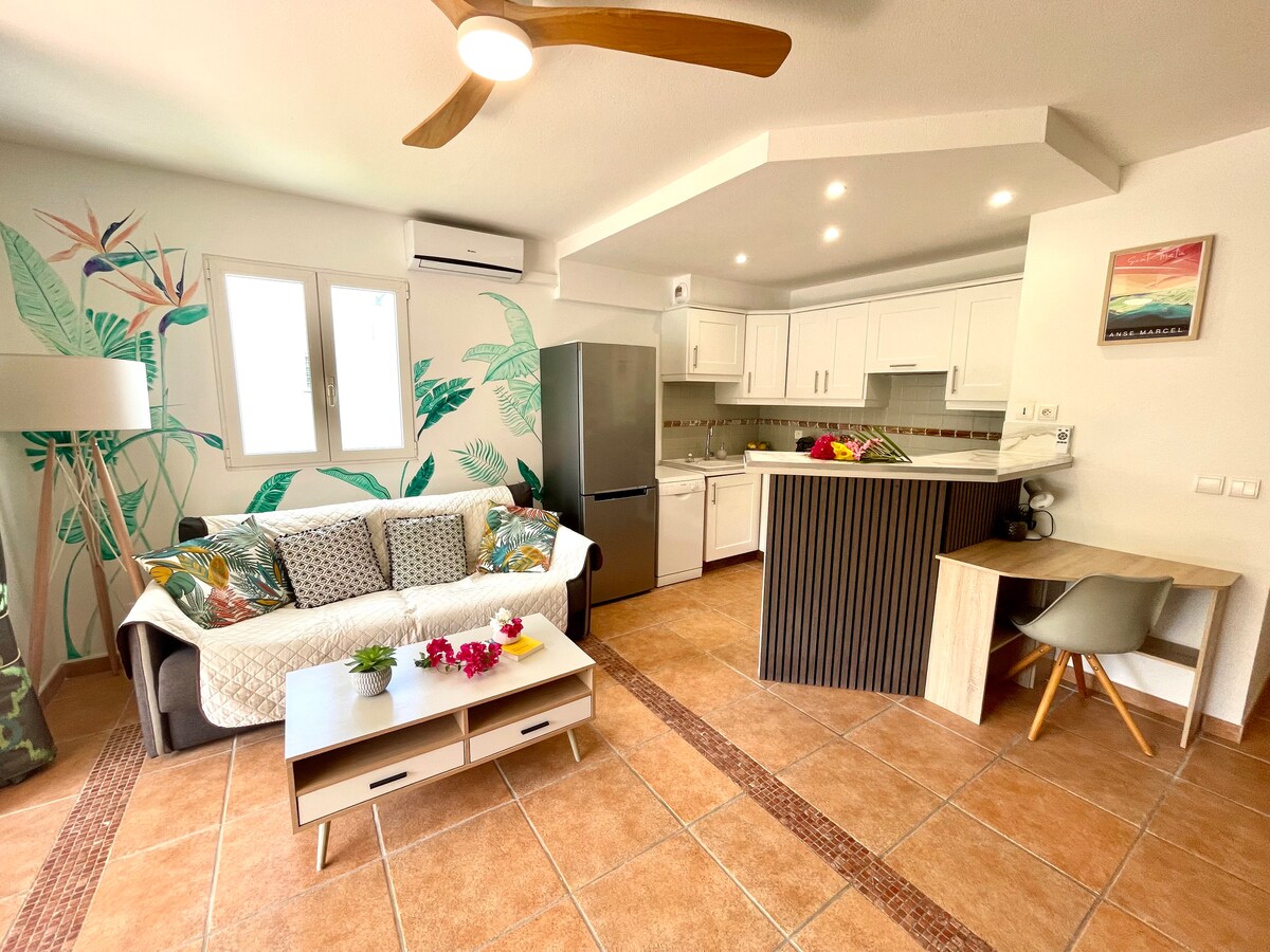 Բարի գալուստ «Իսլա Բոնիտա» Արտոնյալ արևադարձային հանգիստ ՝ հանգիստ և ապահով միջավայրում ։ Domaine de Lonvilliers - ում գտնվող այս ամբողջովին վերանորոգված 35քմ բնակարանը գտնվում է Անսի Մարսելի լողափի անմիջապես դիմաց, որտեղից առանձին մուտք է բացվում դեպի Կարիբյան ծովի բյուրեղյա մաքուր ջրերը: Դուք անմիջապես կսուզվեք Սենտ Մարտինի արևադարձային մթնոլորտի մեջ ՝ անմոռանալի հանգստի համար արտոնյալ և ապահով միջավայրում ։