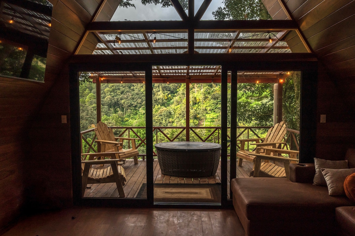 100% փայտե սուիթ ոճի տնակ՝ ջակուզիով։ Գտնվում է Գվատեմալայի Անտիգուա քաղաքի լեռներում՝ գեղեցիկ «Jardines de Provenza» նարդոսի պարտեզում։ Վայելեք երեք հրաբուխների (Ագուա, Ֆուեգո և Ակատենանգո) հիանալի տեսարանները։ Սուզվեք նարդոսի դաշտերի և դրանց անհամեմատելի բույրերի մեջ՝ շրջապատված գեղեցիկ բնապատկերներով և արևամուտքերով։ Կարող եք ուսումնասիրել «Shinrin Yoku» արահետը, որը հատուկ նախագծված է բնական անտառի ներսում։ Մենք գտնվում ենք Գվատեմալա Անտիգուայից 12 րոպե հեռավորության վրա։