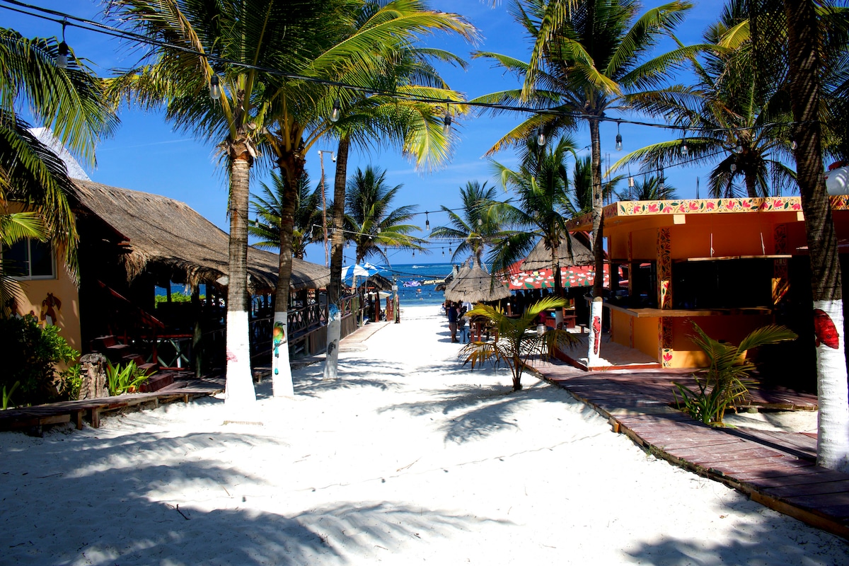 The DLD is the perfect place for a tropical getaway. Located on one of the most beautiful beaches in Puerto Morelos, this place will enchant you upon first sight. Stay steps from the water. Watch the sunrise every morning, refresh in the open-air and sea breeze! Enjoy on-site amenities such as a feet-in-the-sand cocktail bar, local flavours from the kitchen, live music and warm welcoming staff. Private diving trips, relaxing massages, exquisite dinners and more!