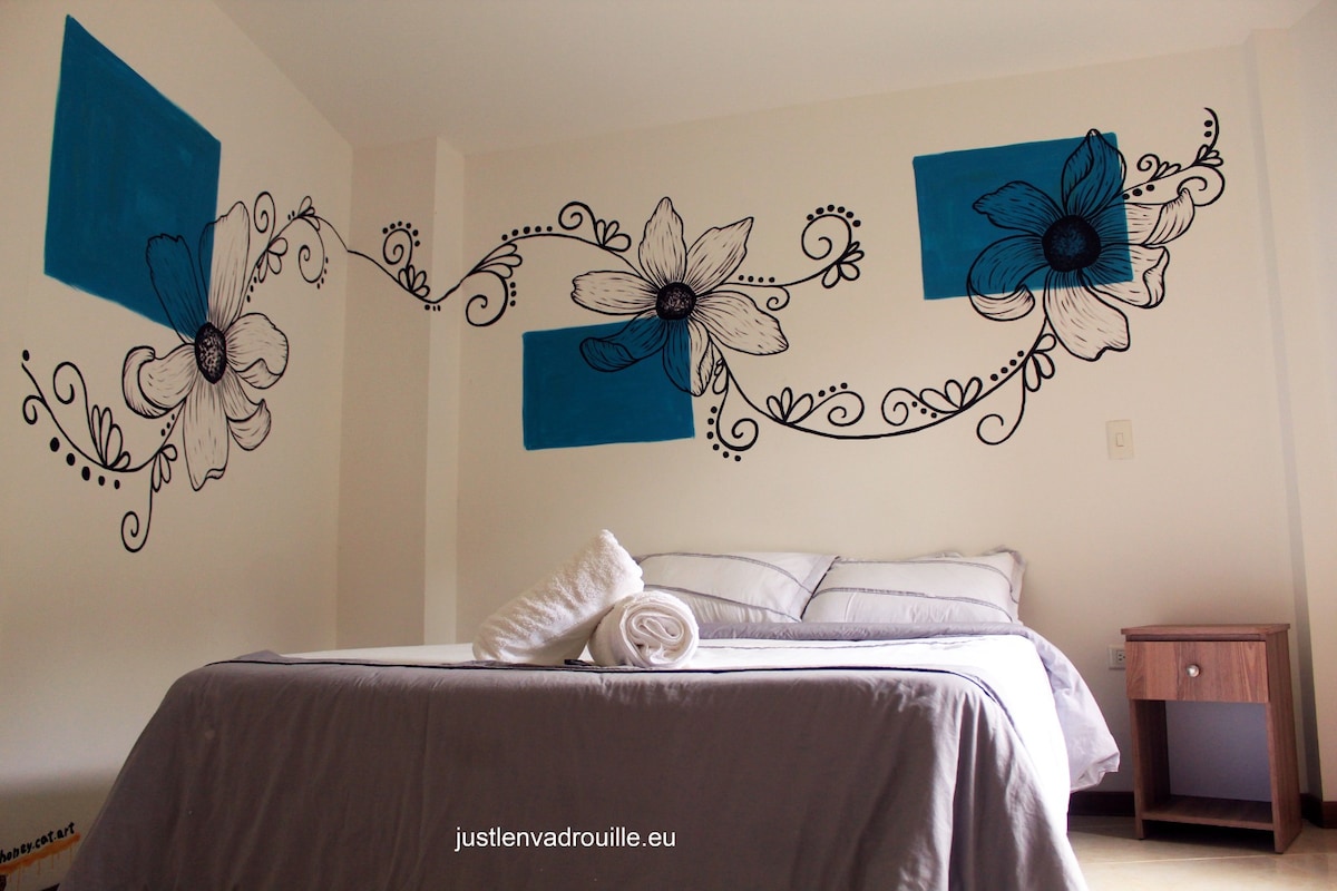 Cómoda habitación que te hará desear quedarte más tiempo. Experimenta la emoción y belleza de los loros y las aves sin tener que salir del alojamiento. Disfruta las vistas y el clima de Medellín sentado en el balcón mientras las luces de la ciudad iluminan tus ojos. Si te hospedas con nosotros podrás conectar con la naturaleza y disfrutar de sus encantos en nuestras habitaciones temáticas de loros, aprendiendo de ellos viéndolos y escuchándolos en los alrededores.