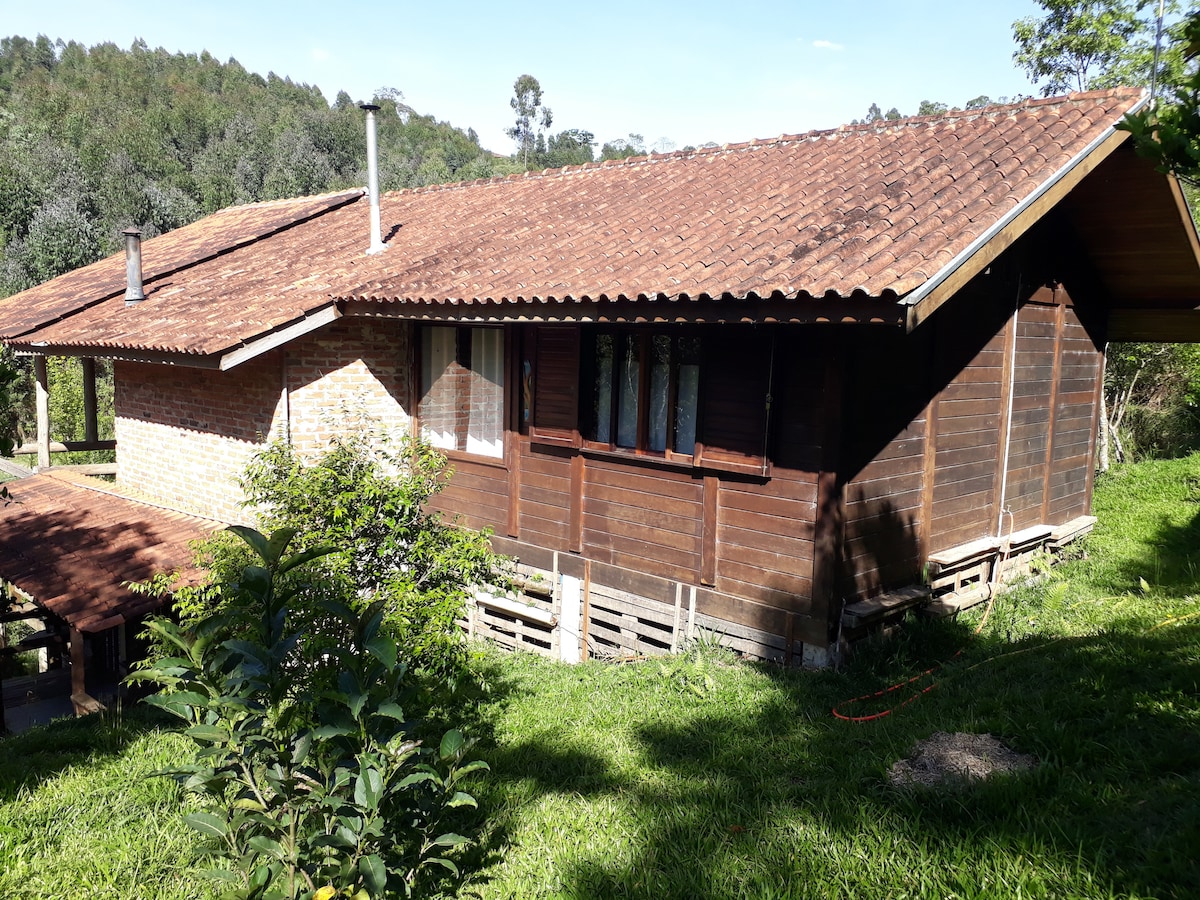Chalé com jardim amplo/chácara, 40min de Curitiba