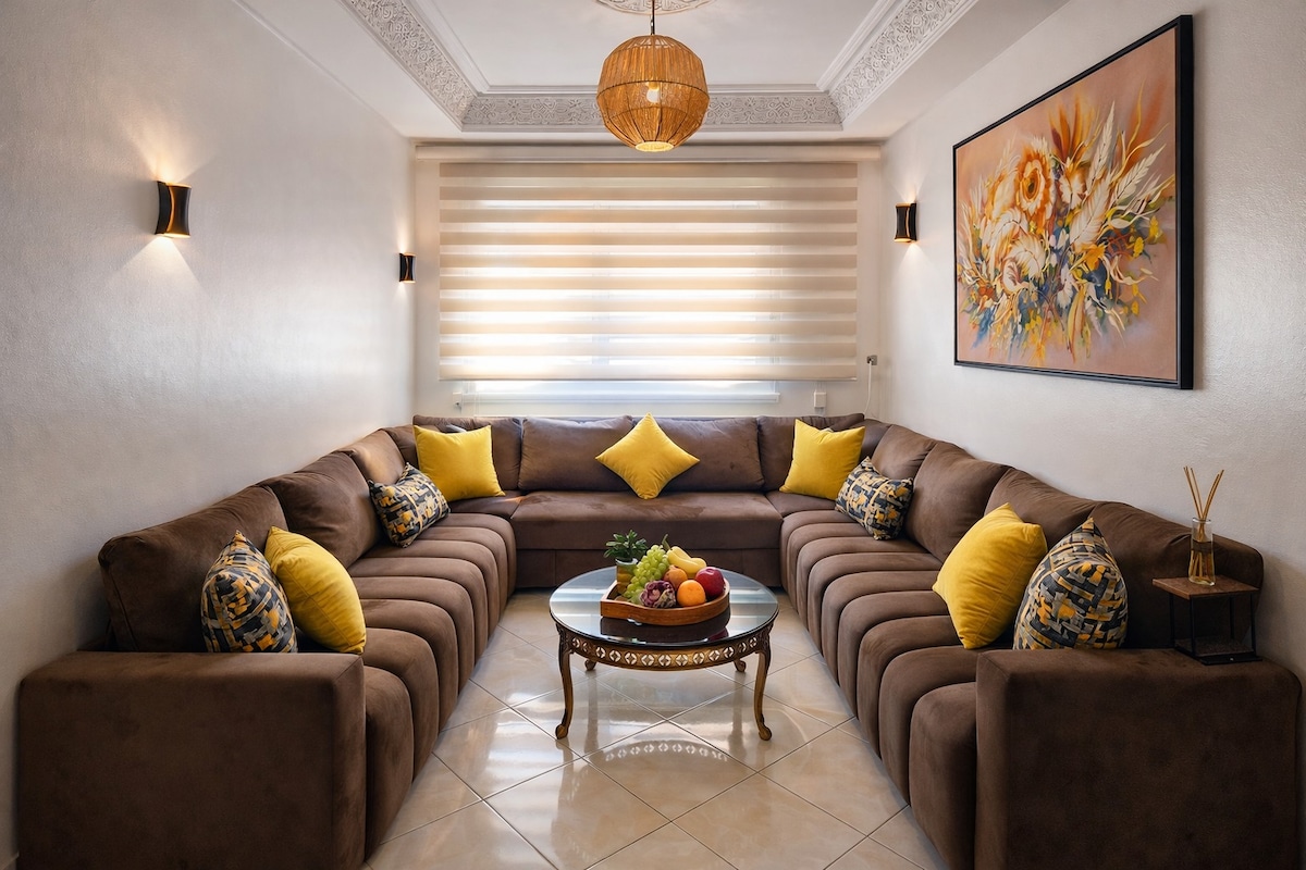 Արևոտ բնակարան 1-ին հարկում՝ Ագադիրի կենտրոնում, սրճարաններից, խանութներից մի քանի քայլ և լողափից 10 րոպե հեռավորության վրա։ Վայելեք հարմարավետ հյուրասենյակը՝ 65 դյույմ անկյունագծով հեռուստացույցով, արագ Wi-Fi-ով և ամբողջությամբ կահավորված խոհանոցով։ Մենք օգնում ենք պլանավորել անմոռանալի փորձառություններ՝ ուղտերի վրա զբոսանքներ, Ագադիրում սահարայում մայրամուտը դիտելը և սենդբորդինգը, Paradise Valley ուղևորությունները, սերֆինգը, սքեյթբորդինգը, քվադրոցիկներով, ջեթ-սկիով, ձկնորսությամբ զբաղվելը և այլն։ Օդանավակայանի տեղափոխման ծառայությունը հասանելի է: ⚠️ Թույլատրվում են միայն գրանցված հյուրեր, այլ այցելուներ չեն թույլատրվում։