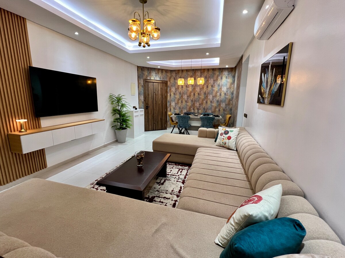 Luxury seaview apartment in the heart of Agadir with a view of the Marina and other famous viewpoints. A stone throw away from the beach, we offer a newly furnished 2 bedroom luxury apartment with private underground parking and many amenities.