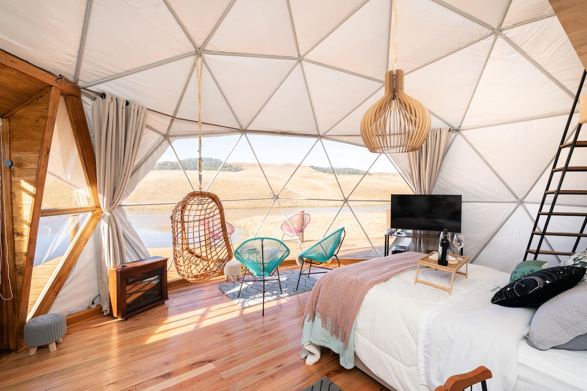 Շալե ամբողջական, ապակե տարածք, համադամասերական տարածք ՝ մանղալով և մայրամուտի անհավանական տեսարանով ։ Լեռների վերևում գտնվող դաշտերի մեջտեղում, բայց քաղաքի կողքին... հիանալի տարածք ձեր հանգստի համար տարածաշրջանի կիրճերում և ջրվեժներում տեսարժան վայրեր այցելելուց հետո, ոչինչ ավելի լավ չէ, քան հանգստանալ ցանցաճոճին կամ մայրամուտ վայելել խարույկի մոտ և ամենացուրտ օրերին վայելել հարմարավետ բուխարի: Ձեր տնային կենդանին ողջունելի է նաև այստեղ ։ obs: Exelente նախաճաշը ՝ ըստ ցանկության, ներառված չէ օրական գնի մեջ ։