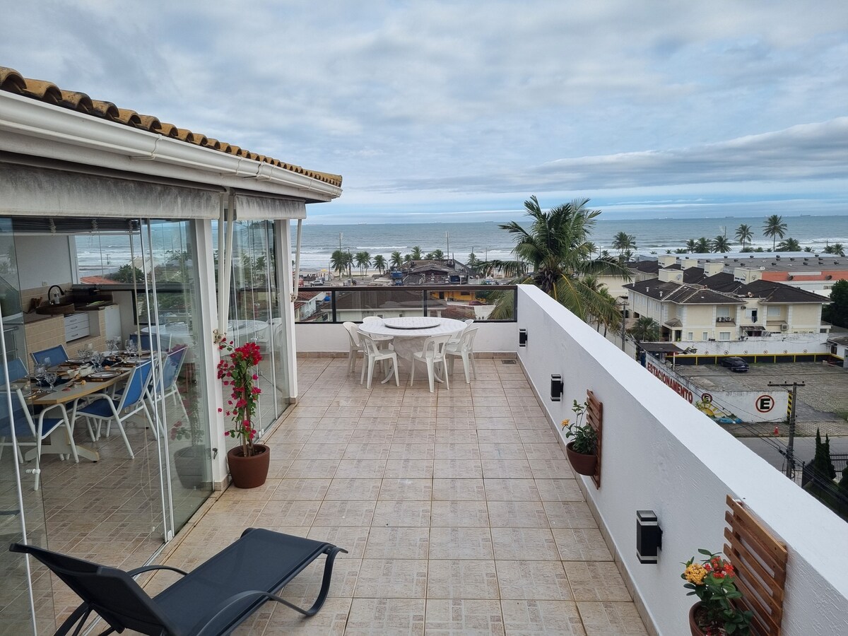 Frente ao Mar Lindo ap com quintal/churrasqueira