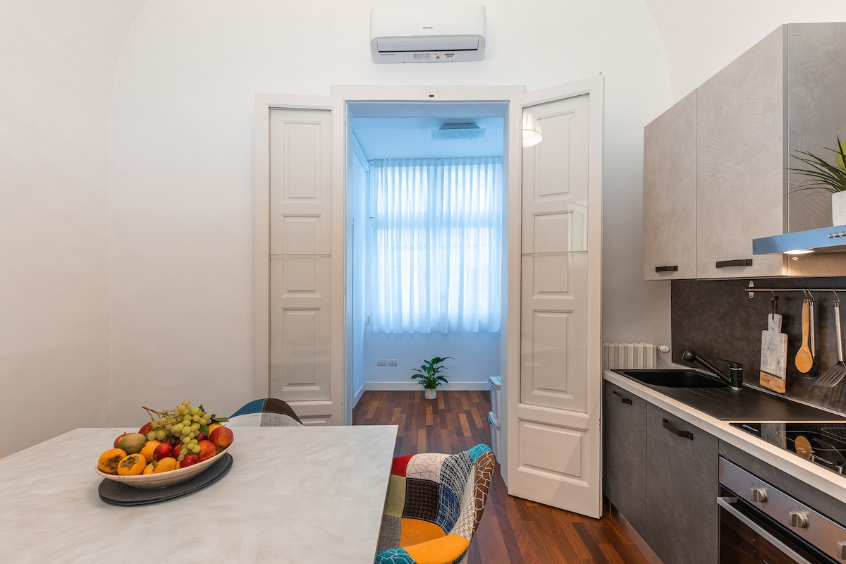Դեպի ծով բացվող տեսարան Բնակարան, որը գտնվում է Բարիի «Մուրատ» թաղամասի ամենահայտնի տարածքներից մեկում ՝ Բարիի ամենաէլեգանտ և նրբաճաշակ թաղամասում, որտեղ գտնվում են գիշերային կյանքով և կոմերցիոն գործունեությամբ լի հետիոտնային և առևտրային փողոցները ։ Նույն վայրում ՝ կենտրոնական երկաթուղային կայարանից և կենտրոնական ավտոկայանից ընդամենը 300 մետր հեռավորության վրա: Պատմական կենտրոնից 2 րոպե ոտքով և ծովից 9 րոպե ոտքով, նրա ռազմավարական և կենտրոնական տեղադրությունը թույլ է տալիս հասնել բոլոր զբոսաշրջային տեսարժան վայրերը
