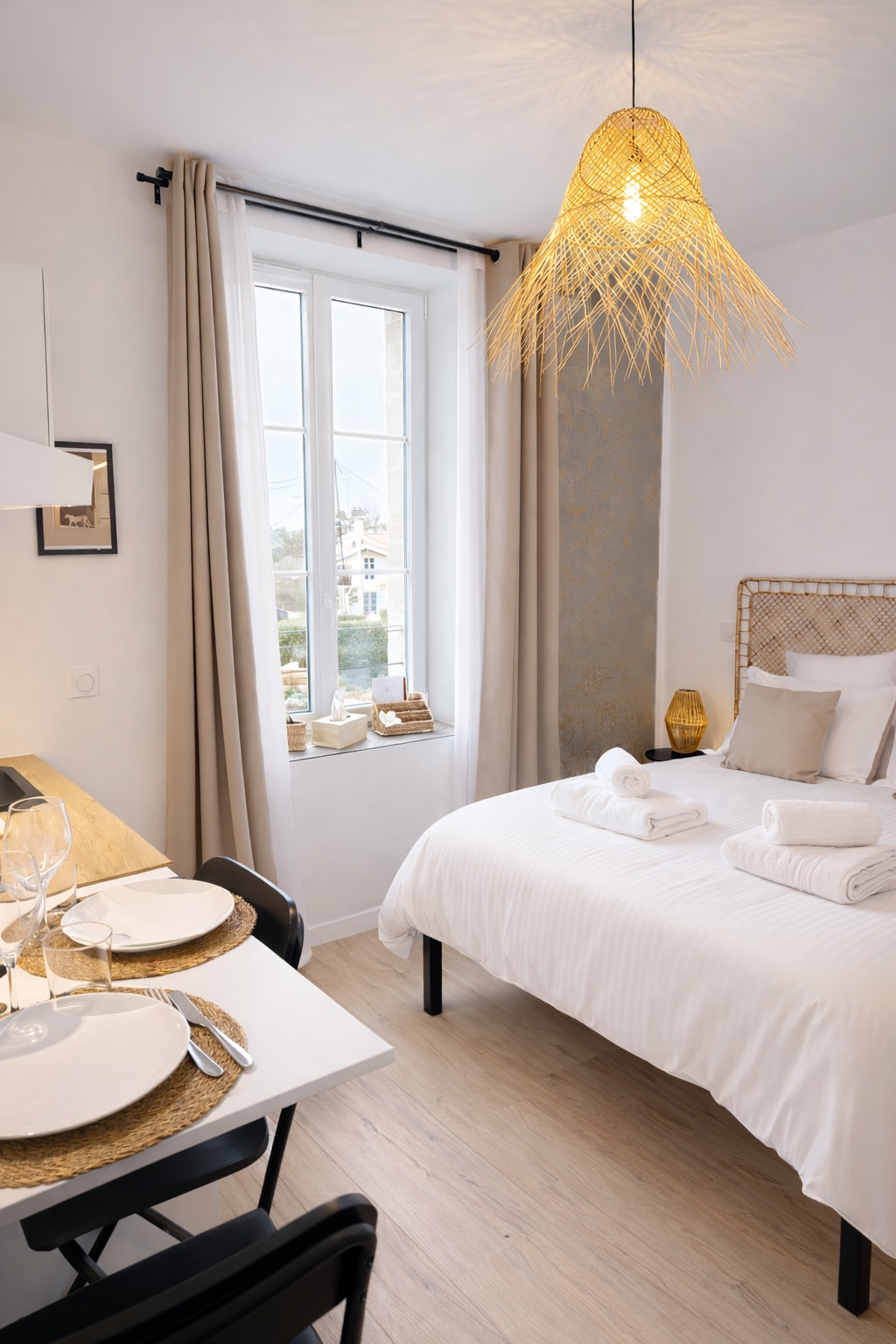 Welcome to our brand-new aparthotel, designed to combine comfort, elegance and a warm atmosphere. Located in the heart of Salles, just steps away from shops and local amenities, it offers the ideal setting for your stay. Each apartment features a private bathroom, WC, a fully equipped kitchen and a dining area. Free on-site parking included. High-speed Wi-Fi, ideal for both personal and professional use. A welcoming and carefully designed place.