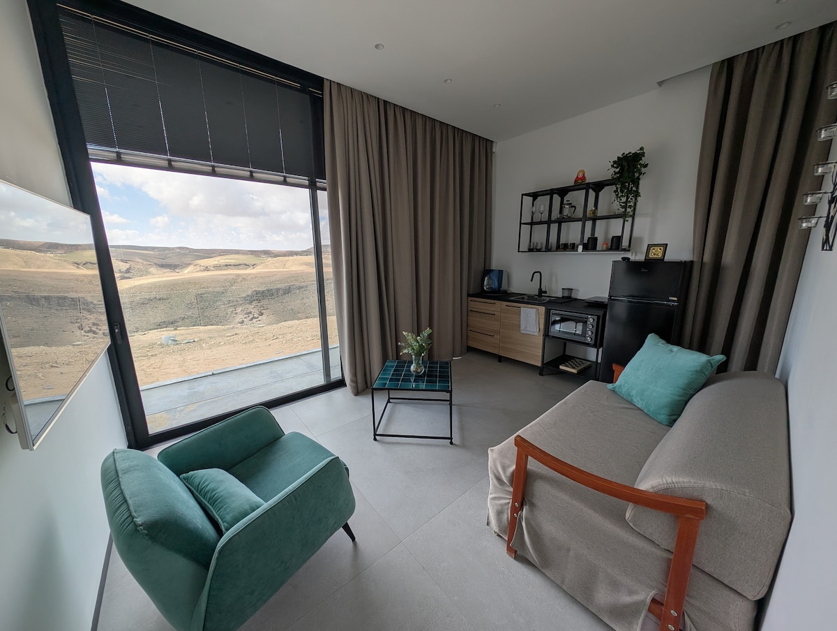 Հմայիչ տարածք, որը գտնվում է երկրորդ հարկում ՝ առանձին մուտքով և անապատի տեսարանով ։ Կարող եք սկսել ձեր առավոտը սուրճով՝ լեռների տեսարանով մասնավոր պատշգամբում՝ դիտելով արևածագը։ Այստեղ կգտնեք ընդարձակ ննջասենյակ, աշխատանքային տարածք, առանձին լոգասենյակ և լիովին կահավորված խոհանոց։ Բարի գալուստ Նեգև՝ անապատում թափառելու, ավազաբլուր բարձրանալու, Այն Էկևում զբոսնելու կամ պարզապես Նահալ Հավարիմի ձորերում մոլորվելու։