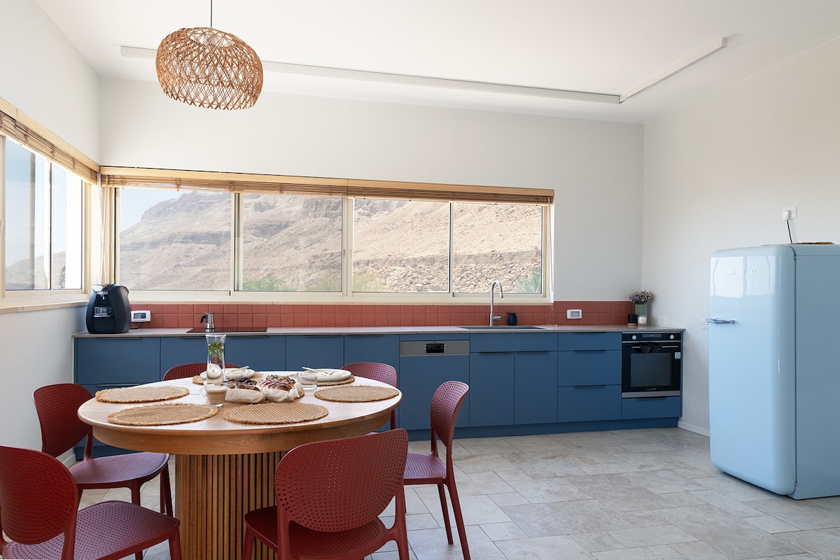 חדש! צימר נעים במיקום מדהים, קו ראשון למדבר. לזוגות / יחידים, אופציה לעוד ילד / תינוק. במרחק הליכה ממסלולי טיול.שביל גישה עם מדרגות. מטבחון (כשר חלבי) מאובזר. בחוץ פינת ישיבה נעימה, ופינת פויקה / מנגל. ניתן לשאול אופניים, קסדות, ציוד ספורט וטיולים - לשימוש באחריות המשתמש. יש בנוסף יחידה המתאימה למשפחה.
