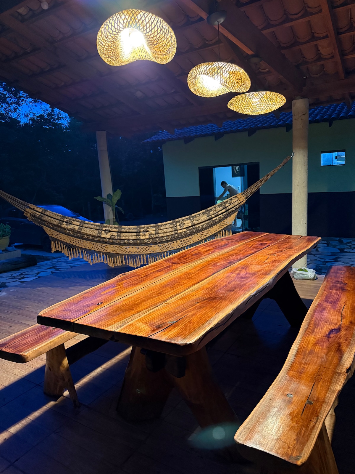 Բացառիկ տարածք ՝ մոտավորապես 1000 մ2 ՝ շրջապատված կանաչով ։ Հանգստացեք այս տարածքում Գոյանիայից 15 րոպե հեռավորության վրա, հեշտ մուտք, դուք կունենաք առանձնություն, հանգիստ բնության մեջ և շատ, շատ հարմարավետություն: Բաղադրիչներ, որոնք Ապոենա շալեն յուրահատուկ փորձառություն են դարձնում Գոիանայի մայրաքաղաքի մոտակայքում, նրանց համար, ովքեր սիրում են փախչել աղմուկից, և ունենալ բուխարիի հարմարավետություն (ներսի և դրսի), որակյալ Wi - Fi (starlink), լոգարան, սպա և պրոյեկտոր ՝ ձեր ֆիլմերն ու սերիալները ոճով տեսնելու համար: