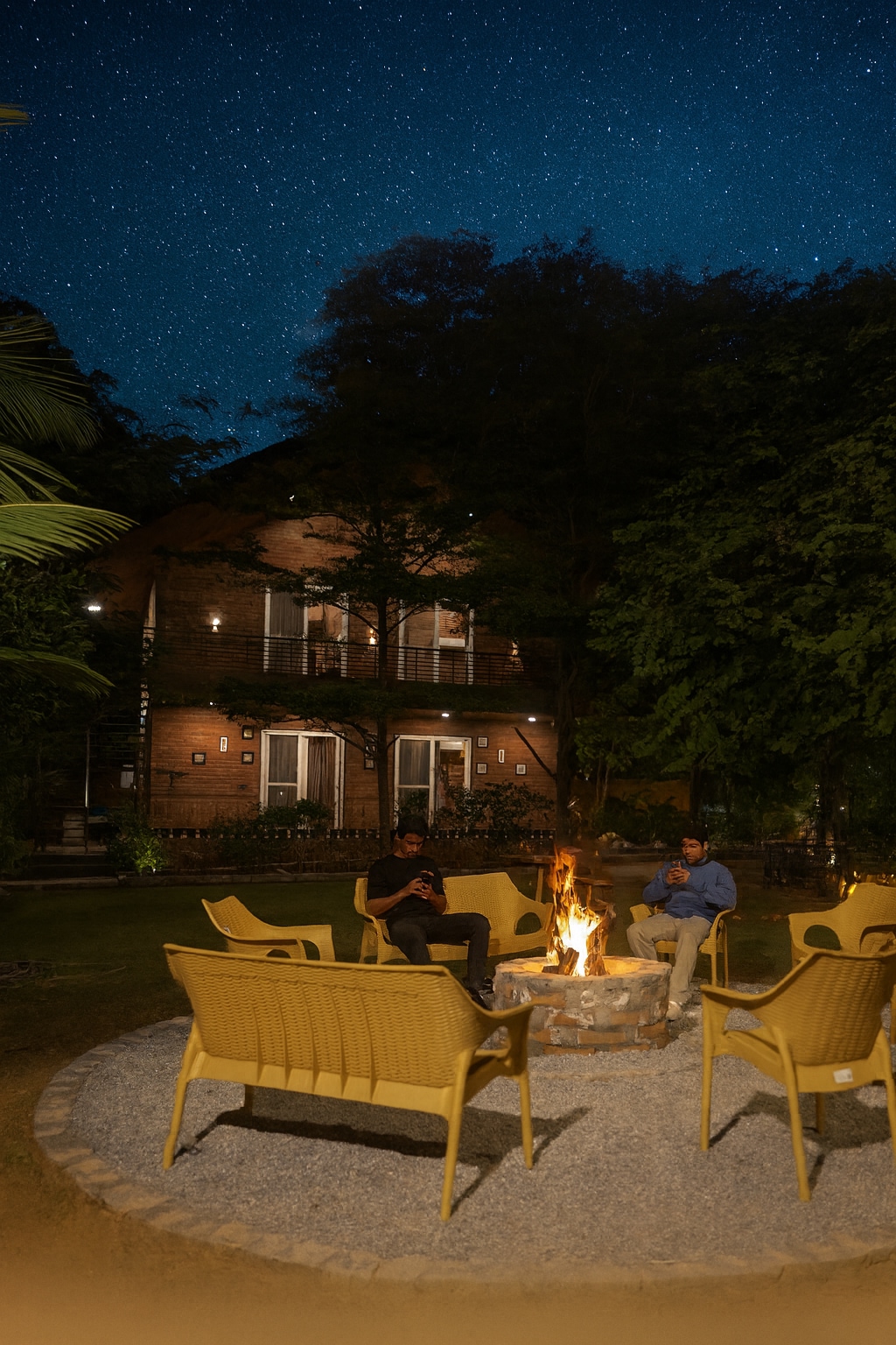 Aravalli Range. խարույկատեղով տների վարձակալություն հանգստի համար