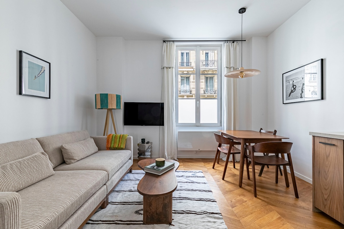 Appartement climatisée de 60 m2 à l’agencement haut de gamme dans l’hyper centre de Paris quartier historique de Montorgueil, célèbre pour ses commerces de bouches, ses petits bistrots et restos. L’appartement se situe au 1 er étage d’un immeuble dans une rue très calme. Il a été refait à neuf en 2023 par une célèbre architecte et donc très bien agencé avec des équipements de très haut standing. Vous y serez comme dans une suite d’hôtel avec le charme en plus, d’un vrai logement parisien.