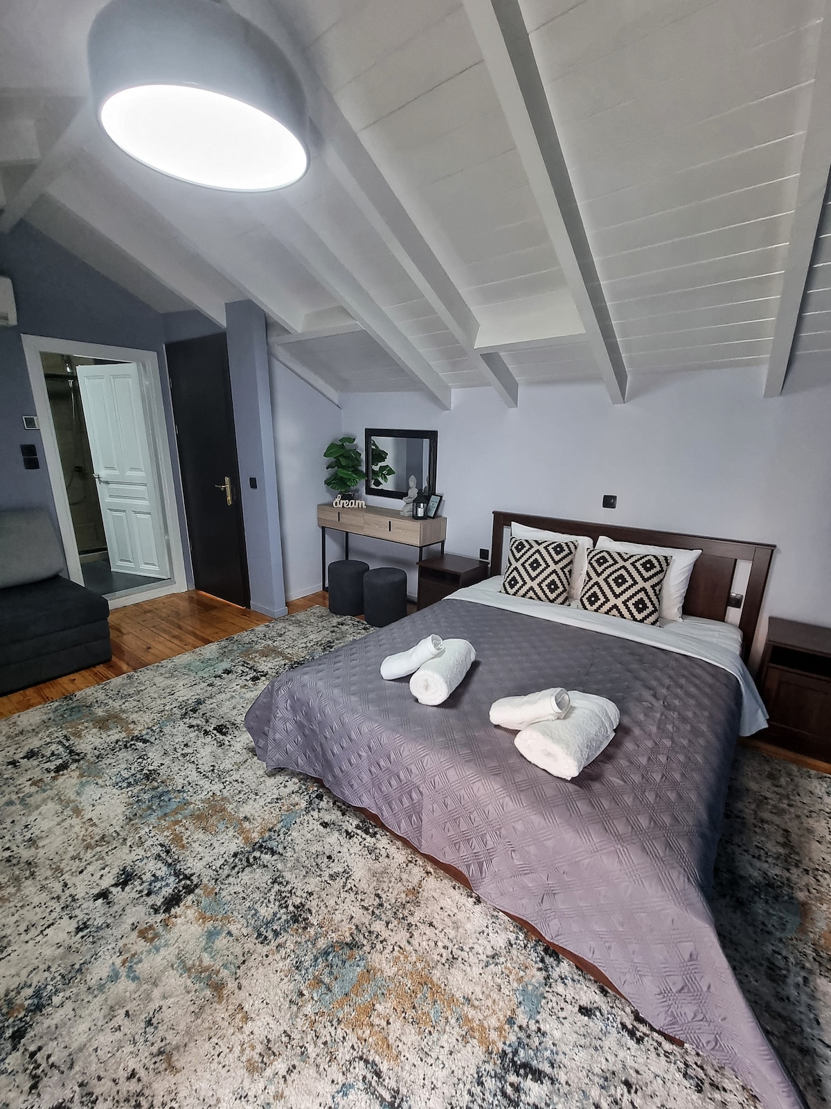 Նաֆպլիոյի հանգիստ տարածքում Kerannymi Loft Suite - ը ձեզ խոստանում է հանգստանալ բոլոր հարմարություններով: Օդի և արևոտ տեսարանով Ավետարանիստրիա եկեղեցու մի կողմում, իսկ մյուս կողմում ՝ Պալամիդի, Բուրցին և ամբողջ նավակայանը, իդեալական է ձեզ առաջարկել խաղաղության և հանգստի պահեր: Մարտի 25 - ին միշտ հասանելի կայանատեղի ՝ սուպերմարկետներով, սրճարաններով, պանդոկներով, հացաբուլկեղենի խանութներով և մթերային խանութներով փողոց ։ Հին Նաֆպլիոյից հեռավորությունը առավելագույնը 10 րոպե ոտքով է ։