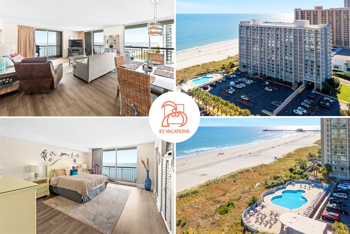 Professionally Remodeled DIRECT OCEANFRONT 3 bedroom / 2 bath condo - Wrap Around Oceanfront Balcony - STEPS away from the BEACH! 🏖 - FREE Parking/ EV Chargers Available - Amenity Access for Guests all Year. Heated Pools/ Jacuzzis available - Easy Check-in 1 Min to Arcadian Shores Golf 2 Min to Tanger Outlets 5 Min to Barefoot Landing 10 Min to Broadway on the Beach 25 Min to the Airport Feel free to contact me for any questions you may have! *Scroll to "The Space" for additional Info**