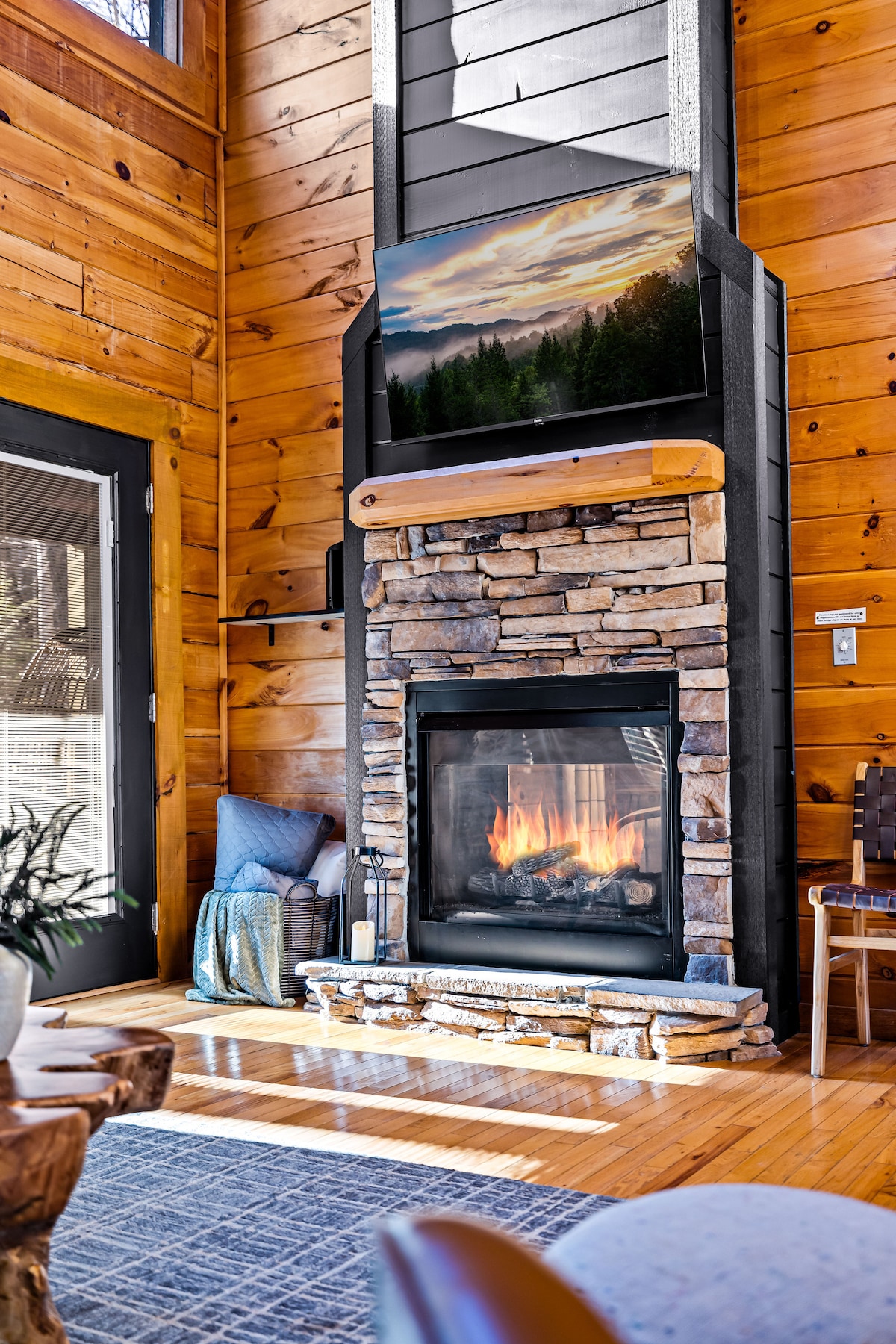 Welcome to Changes in Attitudes! Perfect for Couples. Killer Location. Amazing View. - 600 sq ft Studio Log Cabin - 1 King Bed - Multicade with 12 games - Hot Tub - Electric Fireplace - Easy Paved Roads - 55" TV with Streaming - Hardwood Floors - CUTE!! - Charcoal Grill - High Speed WiFi, 1 Gig Internet connection - Peaceful - Full Kitchen - Great Rates! - Close to Hiking New cabin for us but check out 2000+ reviews on our other cabins in the area.