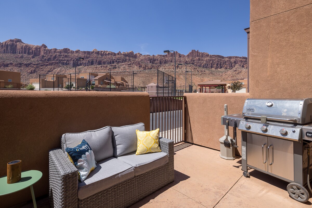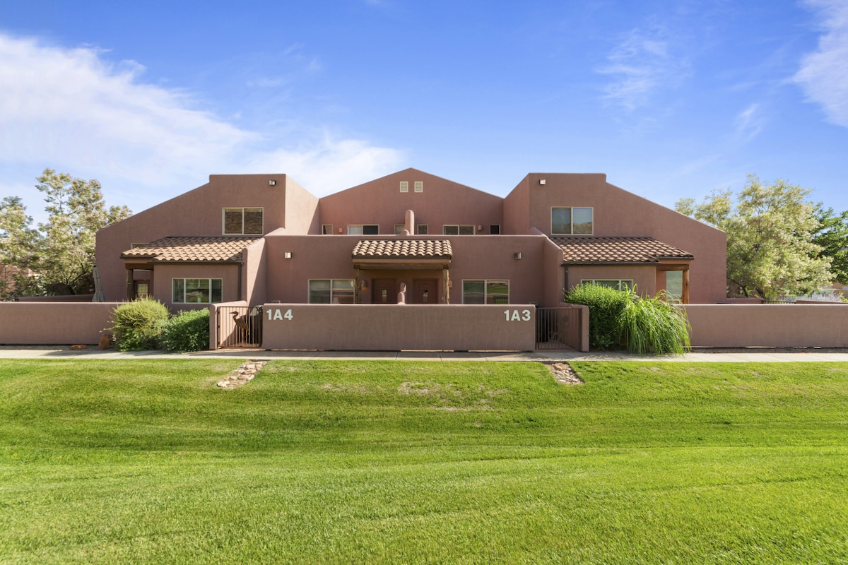 Հանգստացեք և վերականգնեք ուժերը Մոաբի այս նորացված բնակարանում, որը նայում է Մոաբի գոլֆի դաշտի 11-րդ և 12-րդ գրիններին։ Վայելեք մասնավոր կայանատեղի, ամբողջական խոհանոց, ժամանակակից կահույք, նոր հատակ և մտածված հարդարանքի լուծումներ։ Մուտք գործեք ձեր անձնական պատիոյում, որտեղ կա խորովածի համար նախատեսված տարածք, զովացեք սեզոնային լողավազանում և հանգստացեք՝ իմանալով, որ այս տնային կենդանիների համար հարմար տարածքում կարող են հարմարավետ քնել չորս հոգի։ Հանգիստ, հուսալի տուն՝ Մոաբի լավագույն արկածների մոտակայքում․ ամրագրեք վստահությամբ և հանգստացեք ժամանելուն պես։