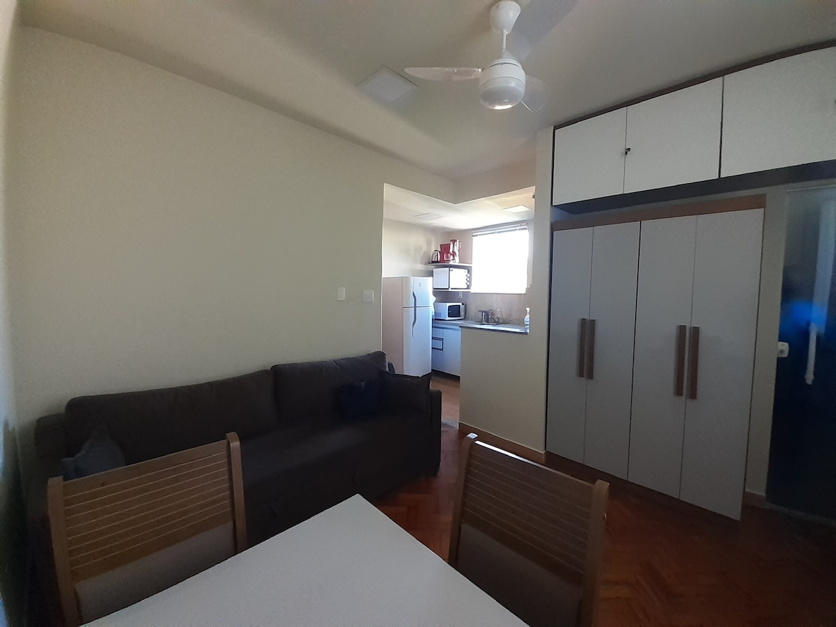 Ամբողջական և ֆունկցիոնալ բնակարան ՝ լուռ և հետ ։ Սան Սալվադորի հրապարակի հարևանությամբ ՝ մետրոյից, FGV - ից և Գինլե և Ֆլամենգո զբոսայգիներից մոտ 5 րոպե հեռավորության վրա ։ Կոպակաբանա և Պաո դե Աչուկար և Կորկովադո կայարանների մոտակայքում ։ Երկրպագուները ննջասենյակներում և հյուրասենյակում ։ Մեկ սենյակում կա օդորակիչ ։ Առկա է 2 ննջասենյակ ՝ 2 երկտեղանի մահճակալով, ինչպես նաև ներքնակ մինչև 5 տարեկան երեխաների համար ։ Խաղալիքներ ՝ լեգո և լողափի հավաքածու ։ Հյուրասենյակի սեղանը բացվում և տեղավորում է մինչև 4 հոգի ։ Մուտք դեպի բնակարան ՝ աստիճանների թռիչքի միջոցով ։ Տնային կենդանիներ չեն թույլատրվում ։