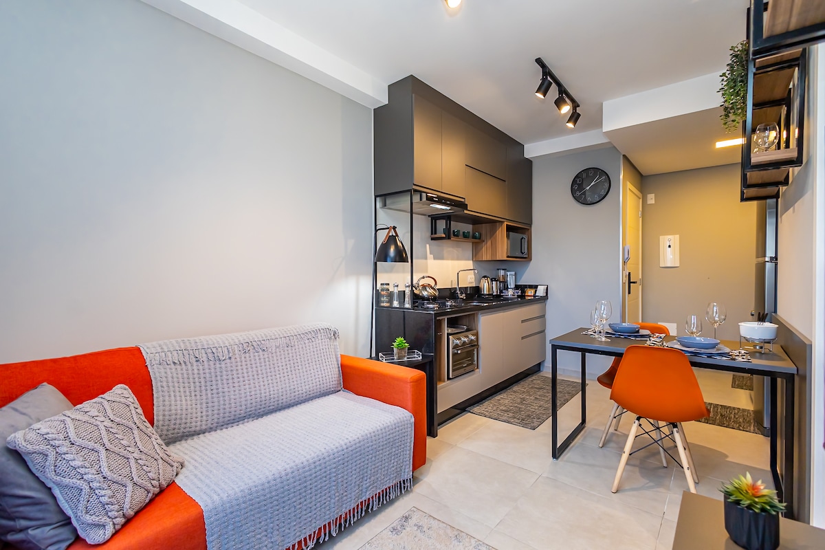 Բարի գալուստ Aconchega այստեղ: Հարմարավետ բնակարան Կուրիտիբայի սրտում ։ Այստեղ կարող եք գտնել մի փոքր տարածք, որը հագեցած է և պատրաստ է ամեն օր ընդունել ձեզ ։ Կոնդոմինիումում որոշ միջավայրեր կհեշտացնեն ձեր այցը ՝ ավտոկայանատեղի (նույնիսկ մեծ մեքենա), գրասենյակային տարածք, տանիքի սպասասրահ, ֆիթնես կենտրոն և շուկա: Մենք գտնվում ենք Ավ. Իգուաչուն, Կուրիտիբա (700 մ) և Estação (900 մ) առևտրի կենտրոնների միջև, Praça Ouvidor Pardinho - ի դիմաց ։ Որոնեք մեզ Instagram - ում ՝ @aconchega.here