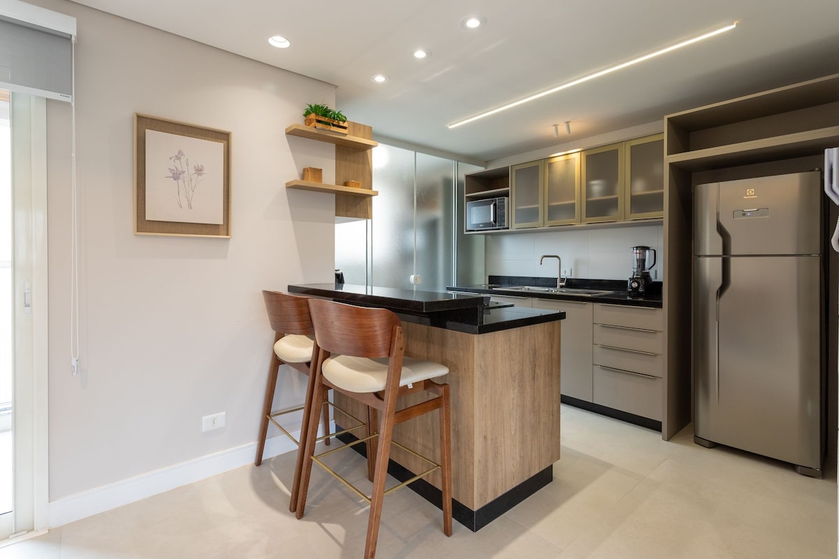 Բնակարանում կա օդորակիչ, սմարթ հեռուստացույցներ՝ հյուրասենյակում և ննջասենյակում, Wi-Fi, Dolce Gusto սրճեփ, Luuna ներքնակ և բազմոց-մահճակալ։ Յուրաքանչյուր մանրուք ստեղծվել է ձեր հարմարավետության համար՝ սկսած Karsten սրբիչներից մինչև գազօղակ, վարսահարդարիչ և կախիչներ։ Շենքում գործում է անվտանգության շուրջօրյա ծառայություն, կա մասնավոր կայանատեղ և սմարթ կողպեք՝ առանց խնդիրների ժամանում ապահովելու համար։ Գտնվում է Shopping Estação-ից, FAE-ից, UTFPR-ից և McDonald's-ից մի քանի քայլ հեռավորության վրա։