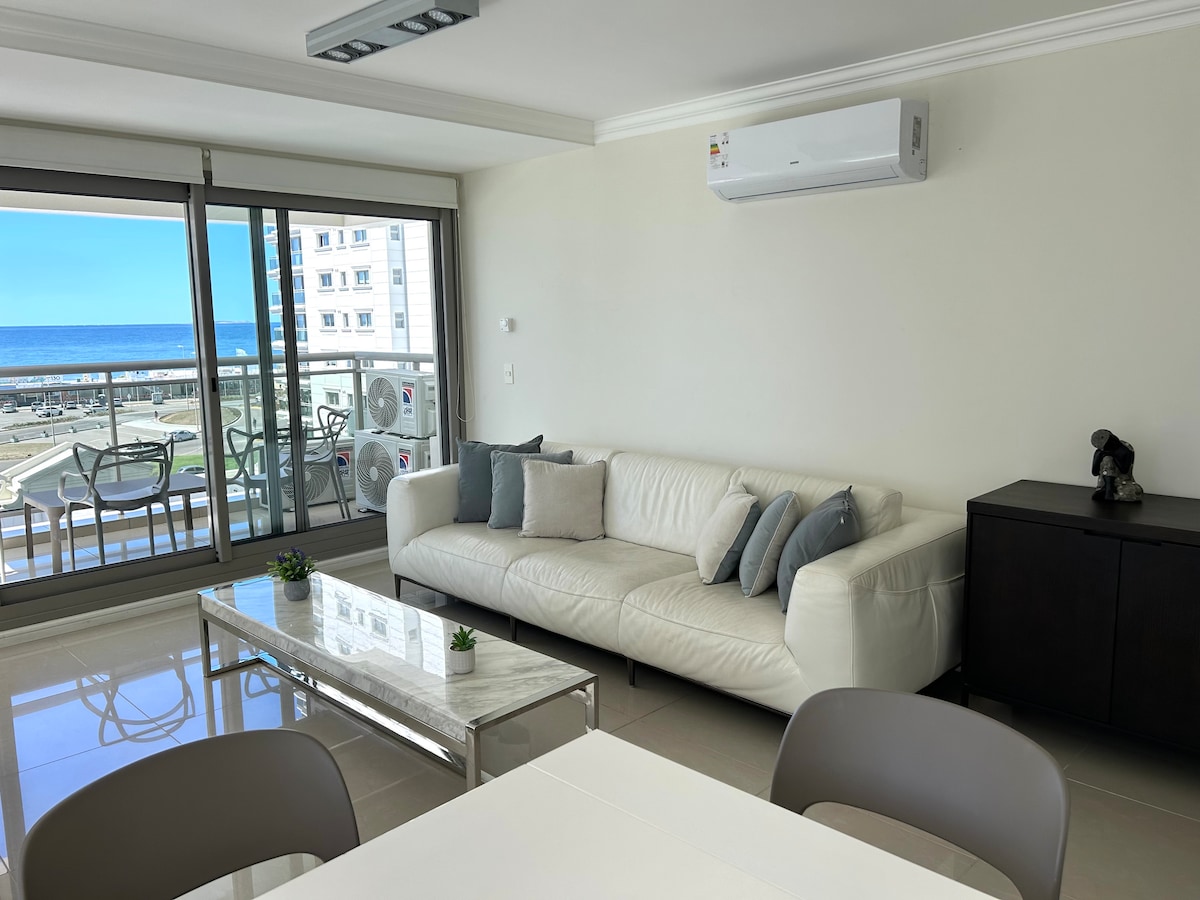 Precioso apartamento con vistas al mar a 120 metros de la playa, 1 dormitorio, living, baño, cocina y balcon, totalmente equipado y super comodo. El edificio cuenta con piscina climatizada interior con un jacuzzi , gimnasio, recepcion, dos piscinas exteriores y parrillero , un parrillero en la terraza con vista a la playa Mansa y la Brava y tambien parking. En una zona llena de restaurantes, mercados y mas. 😊