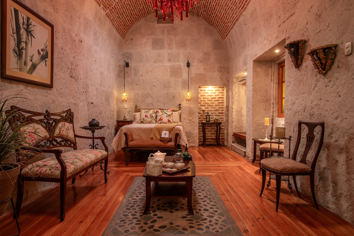 Ողջույն, մենք Վալերին և Ռոքսանան ենք և կլինենք ձեր տանտերերը , կացարանը Բուենոն, Բոնիտոն և Բարատոն են (Կասոնան վերականգնվել և վերածվել է հարմարավետ մինիպարտամենտի), այն գտնվում է Պլազա դե Արմաս դե Արեկիպա քաղաքից հինգերորդից մինչև 2,5 թաղամաս հեռավորության վրա, դուք և ձեր խումբը կարող եք հեշտությամբ օգտվել ամեն ինչից: Այն գտնվում է երկրորդ մակարդակում (սանդուղքը պարուրաձև է), կարողությունը 6 հոգու տեղավորելն է, մենք սպասում ենք ձեզ ☺️