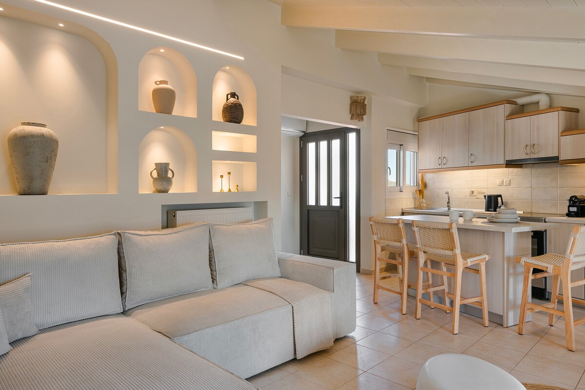 A brand new, tastefully decorated deluxe suite! Modern, sumptuous and sophisticated. We have carefully planned and chosen every single detail to maximize comfort & relaxation. Enjoy our elegant 50 m² apartment, designed in grey beige tones with modern accents and tailored to the needs of worldly travelers who do not compromise with basic accommodation. Colorful vibes of materials blend together in harmony to offer an adorable environment.