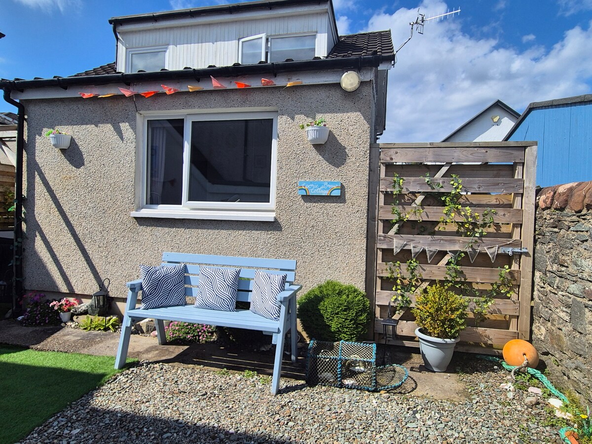 Delightful garden-fronted cottage facing on to spectacular panoramic seascape views across Asknish Bay to Craobh Marina and the Inner Hebredean islands of Shuna, Scarba and Jura. 130+ yr old rural Post Office, tastefully modernised to provide comfortable accommodation for 1, 2, 3 or 4 people - seaward-facing lounge & master bedroom, 2nd bedroom, large kitchen/dining room, shower/bathroom and cloakroom. Stay 7+ nights for 5% discount on whole stay - or 2 weeks for 10% off!