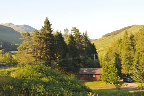 Կեչու տնակ, որտեղից բացվում է տեսարան դեպի լոխ և լեռնագագաթներ