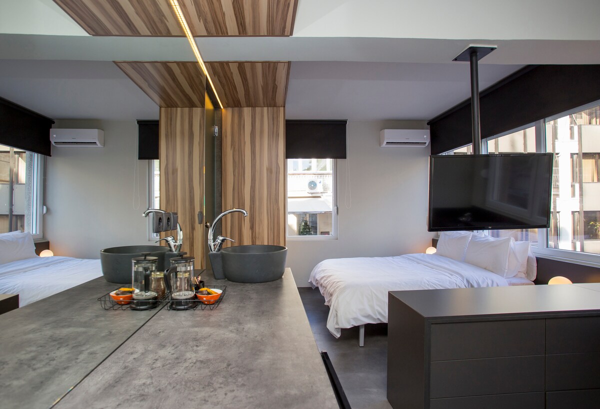 -Prime location on side street of Aristotelous Square -Few steps from the waterfront -Easy walking to all venues/sites -Modern clean design with ample natural lighting -Easy keyless access -Room darkening blinds -Inverter A/C Unit heat/cold -High quality mattress & pillows -Hotel style bathroom -Professionally cleaned -Perfect for a couple, lone traveller, friends & family -Possible outside noise from nearby bars -Offers all amenities needed for a comfortable, relaxing stay in this vibrant city!